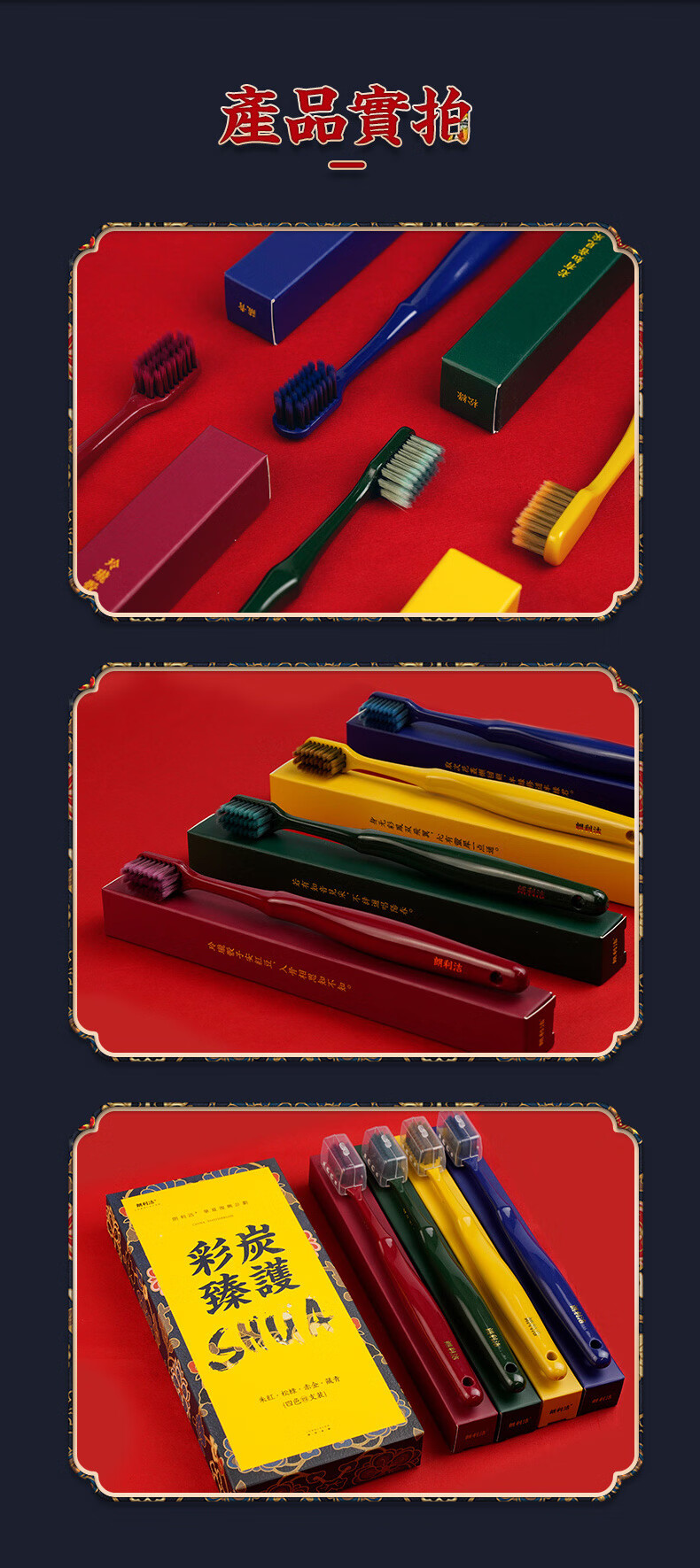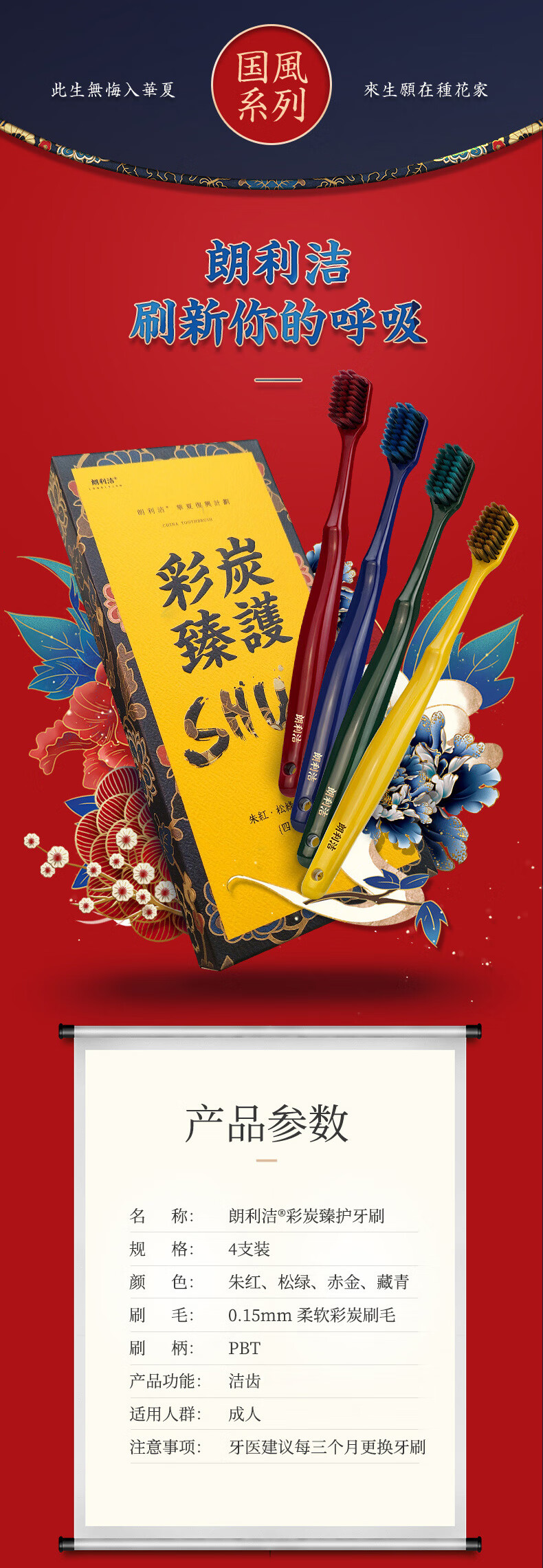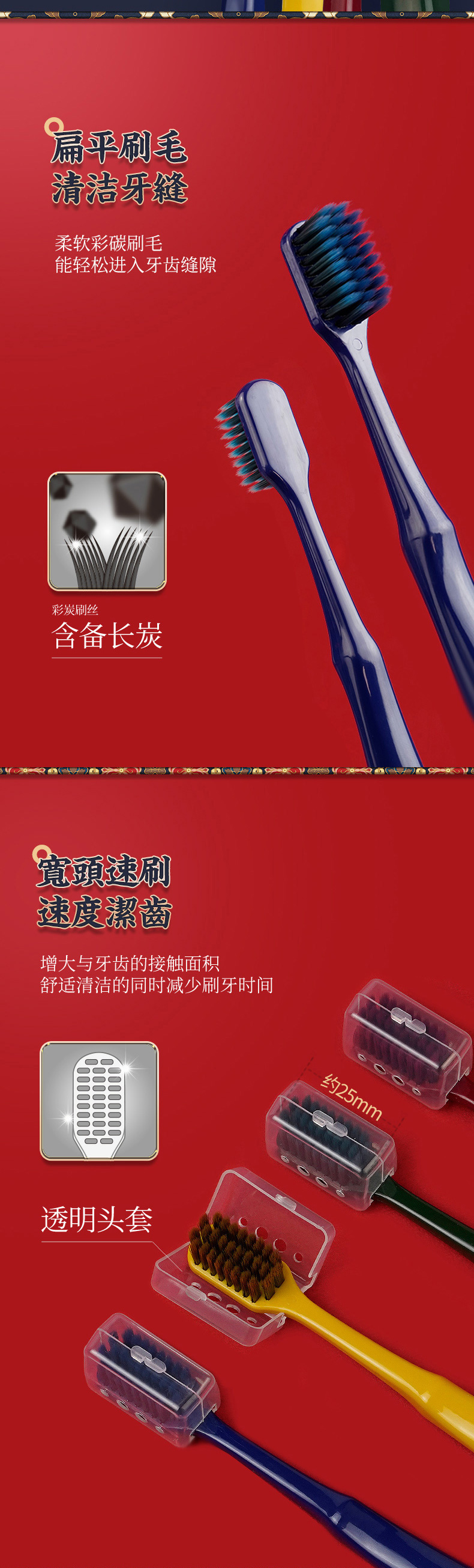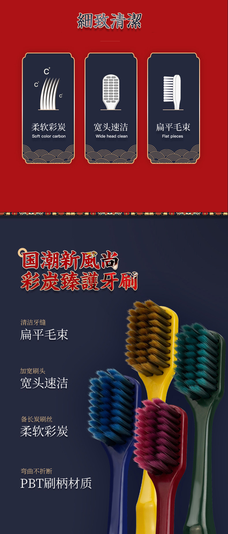 Langli Jiecai Carbon Zhenzhen protects adult wide-head soft-bristled toothbrush with high-density pointed filament independent brush cap Chinese style carbon filament bristles 4 pack