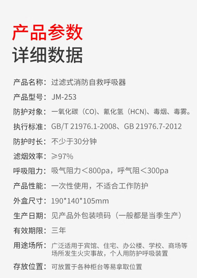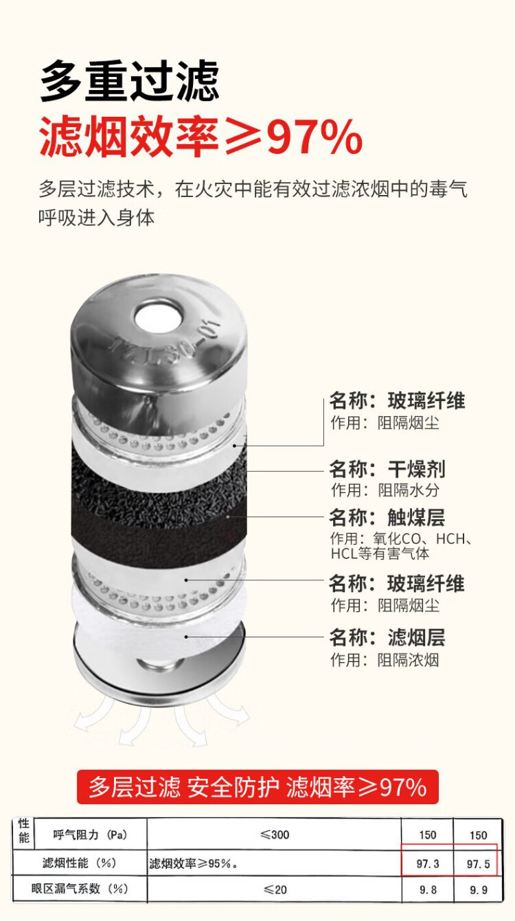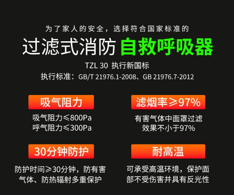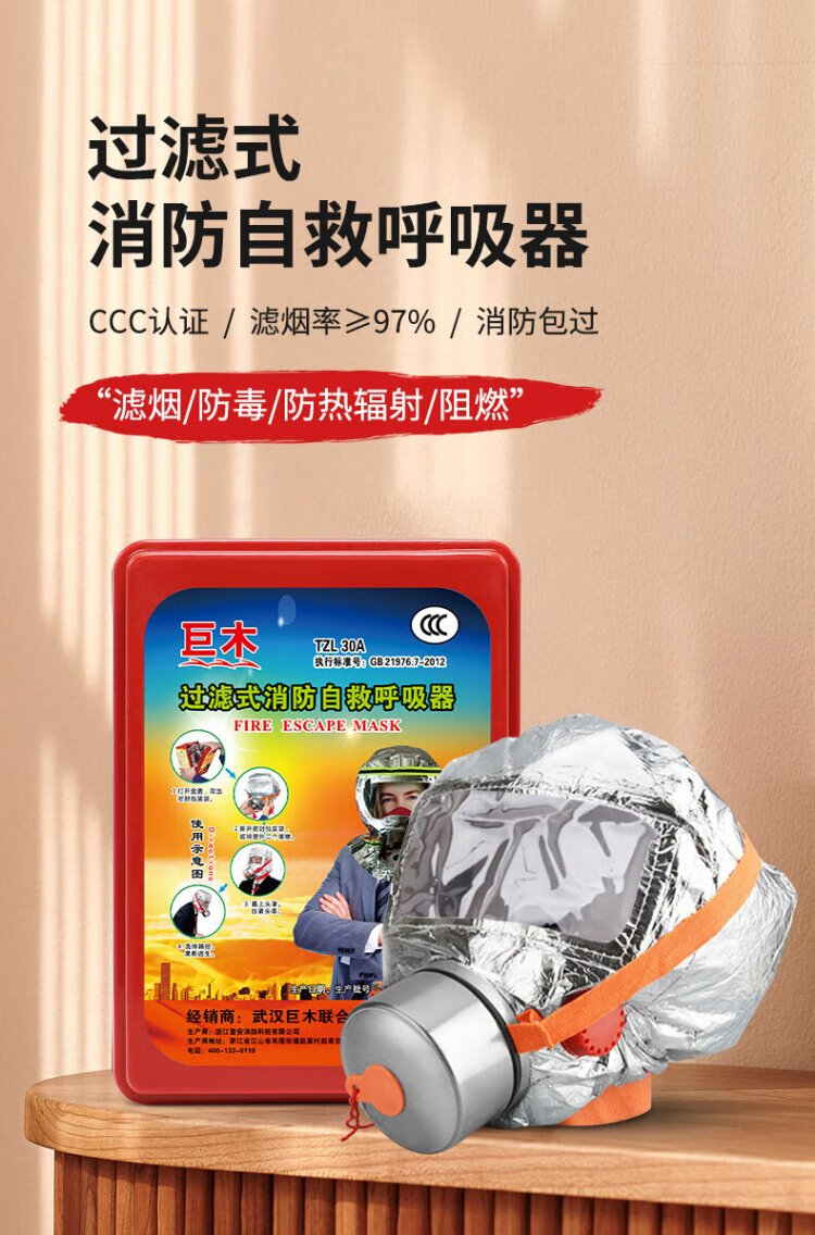 Giant wood gas mask fire mask anti-smoke fire mask 3C certified escape filter self-rescue respirator TZL30