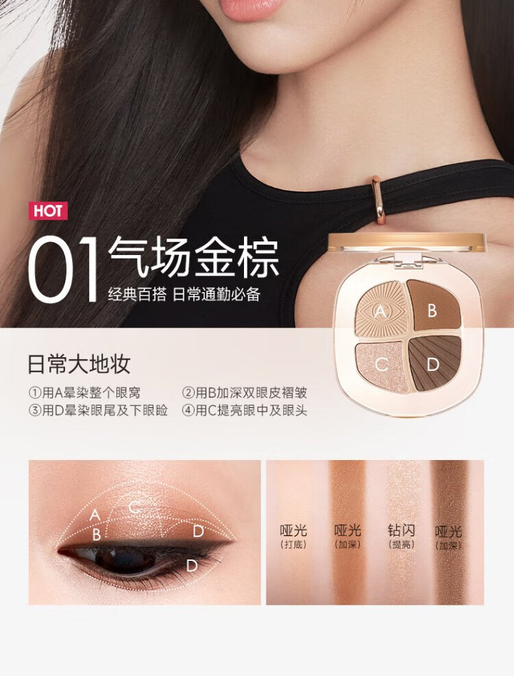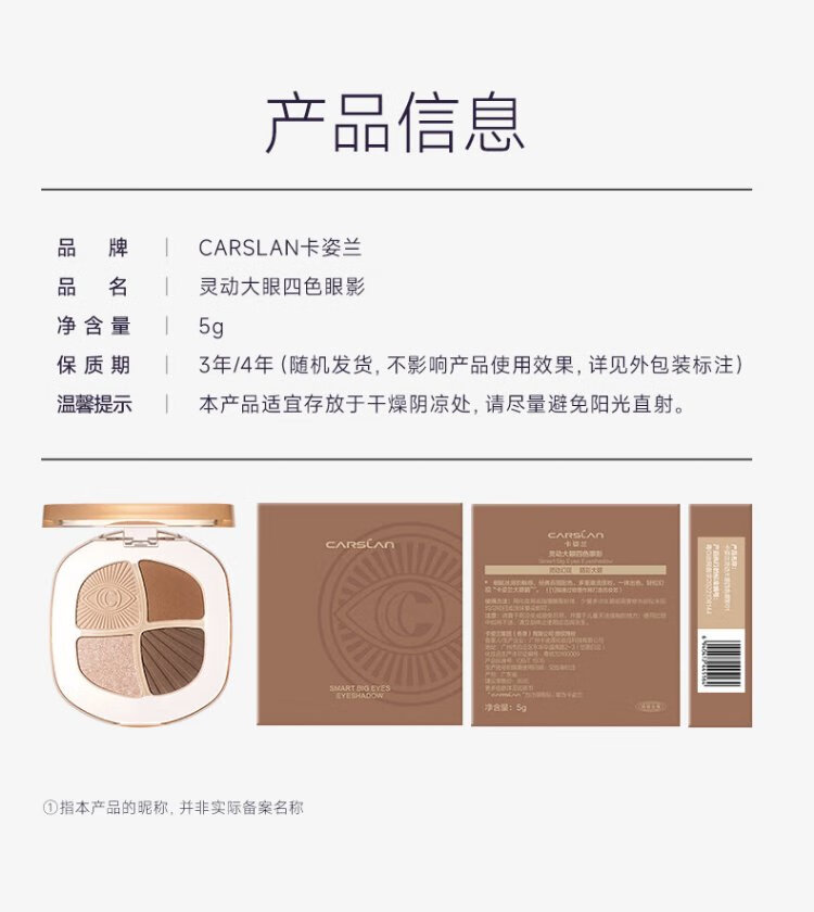 Carslan Smart Big Eyes Four-Color Eyeshadow Palette Fine and Non-Flying Powder 03 Atmosphere Tea Brown 5g New Year's Day Gift