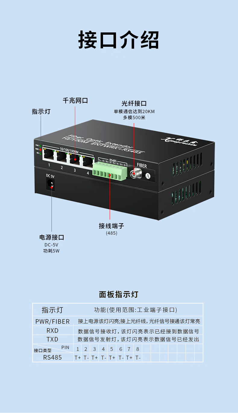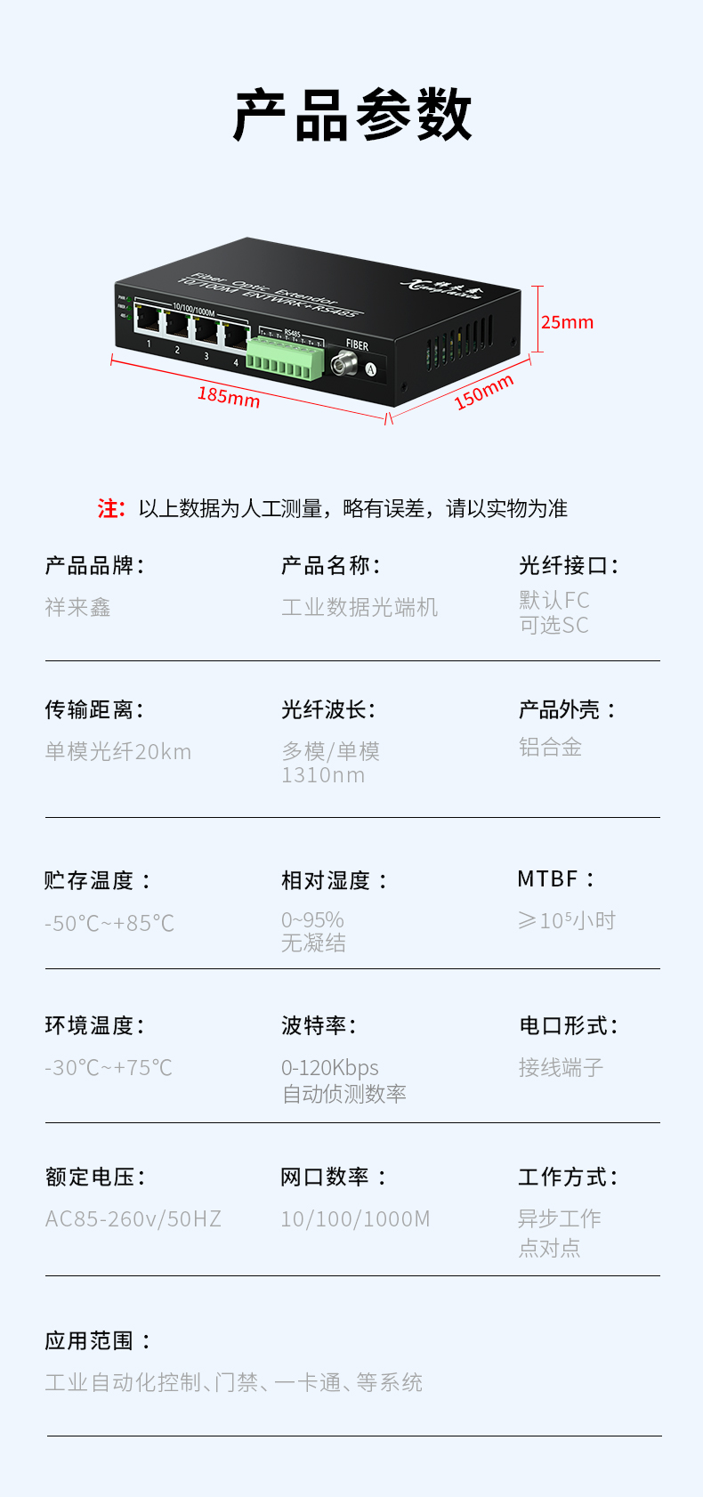 Xianglaixin industrial control serial data optical transceiver 4-channel Gigabit network + 4-channel bidirectional 485 + 1-channel 232 data optical fiber optical cat transceiver FC single-mode single fiber 1 pair XLX-GB6G4B4A1