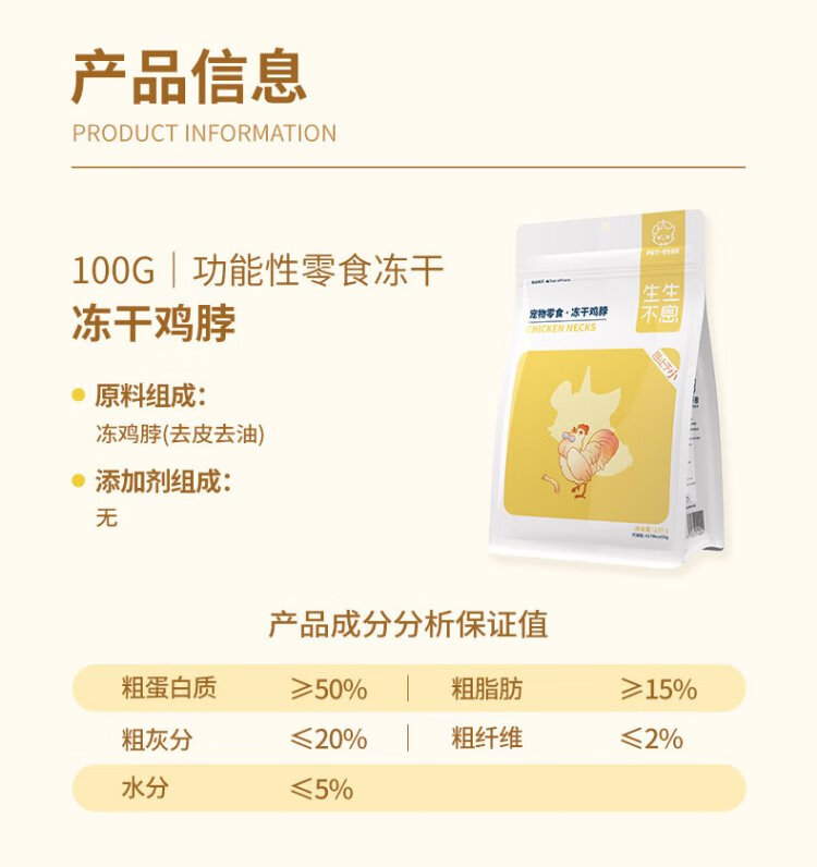 Freeze-dried Chicken Neck Pet Teeth Sticks for Cats and Dogs Teeth Cleaning Snacks 2.0 Upgraded Version 100g