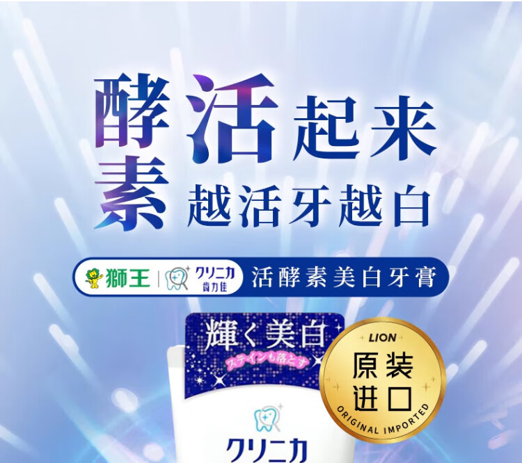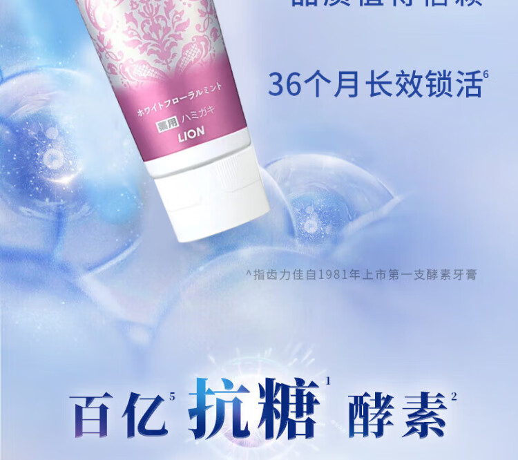 Lion Zhilijia enzyme whitening toothpaste 130g removes stains, removes bad breath, contains fluoride, freshens breath, and is imported from Baihua Mint