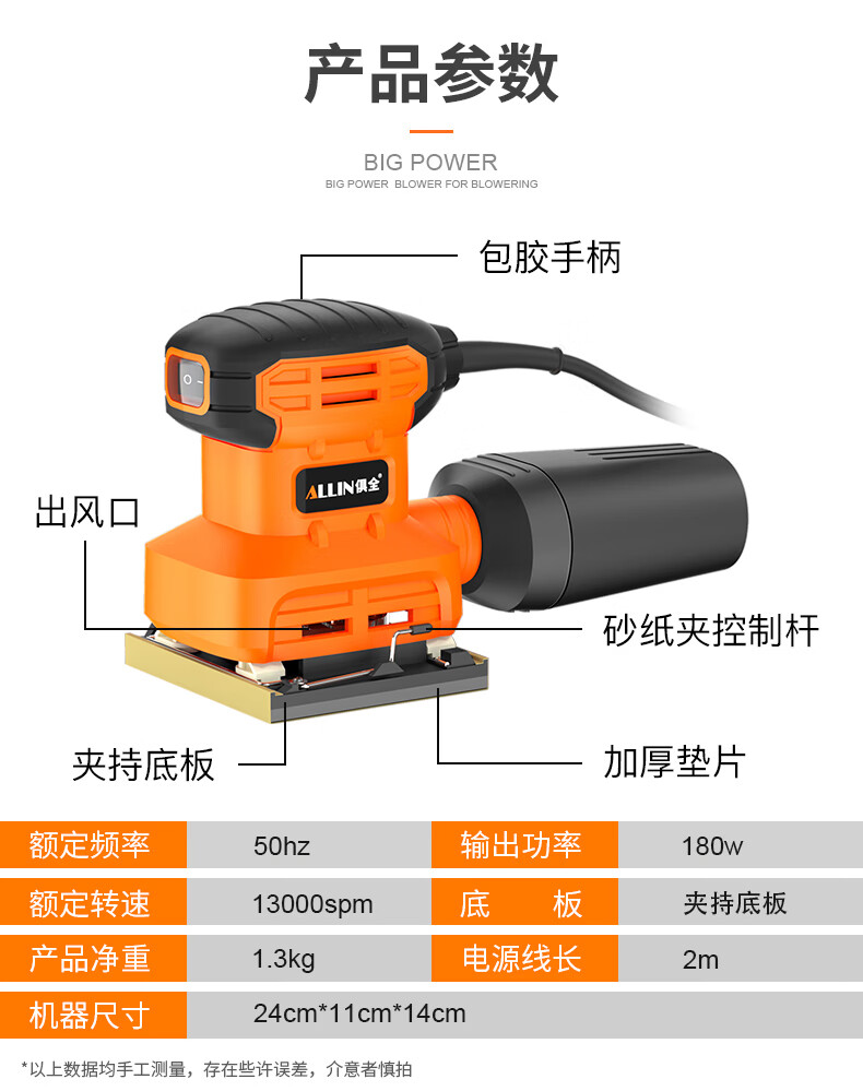 Juquan (JU QUAN) sander, industrial grade putty sander, sandpaper machine for polishing wall furniture, wood wall, can polish right angles