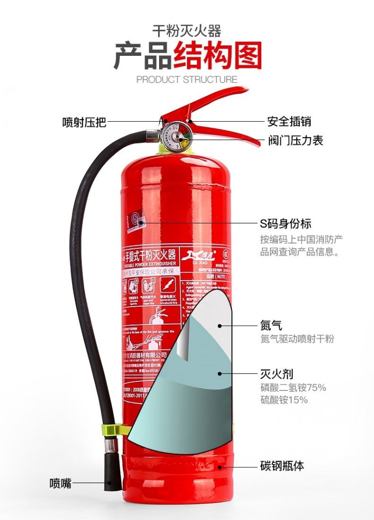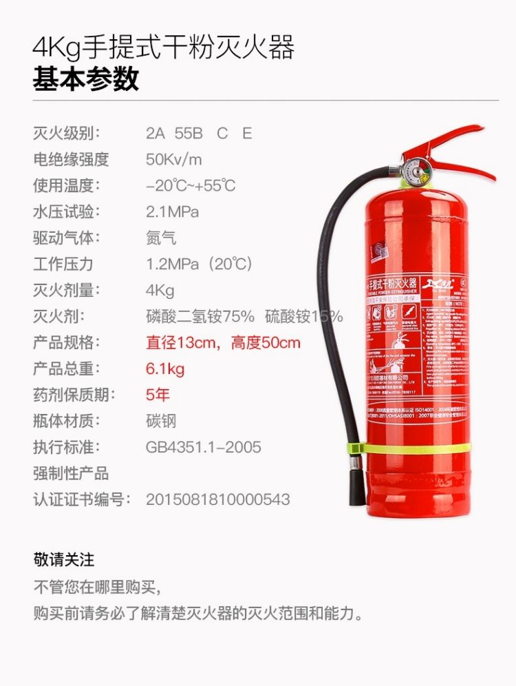 Green fire 25 new national standard dry powder fire extinguisher 4kg household 4kg national fire protection 3c certification Jingdong self-operated store set