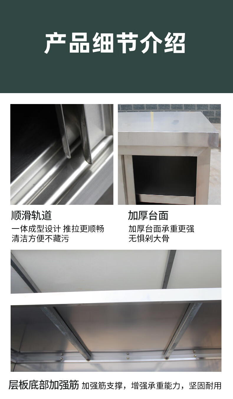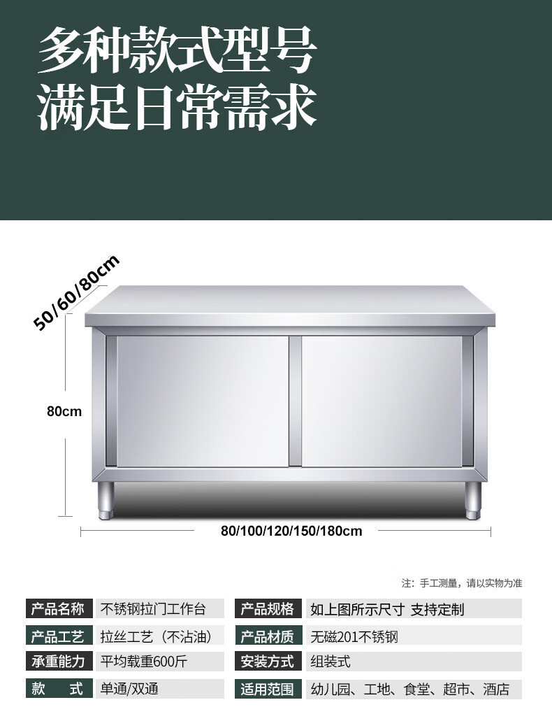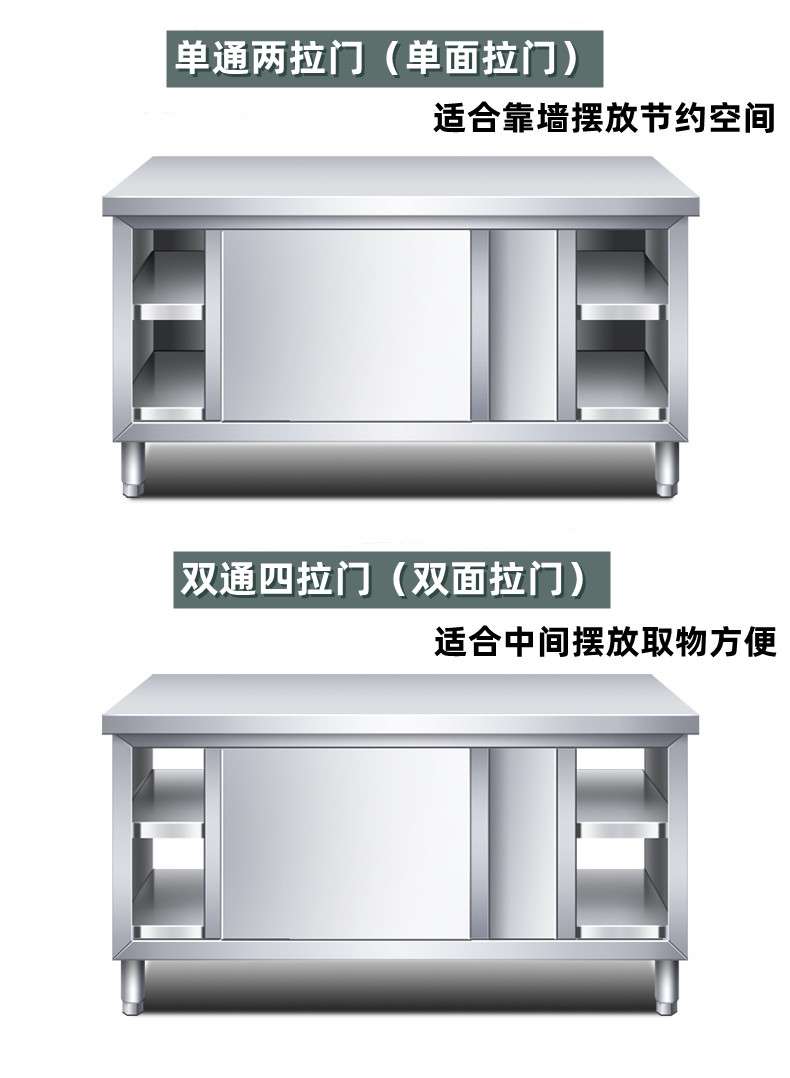 Yuwei 201 stainless steel workbench kitchen countertop table with door commercial loading table thickened 180*60*80cm double-pass