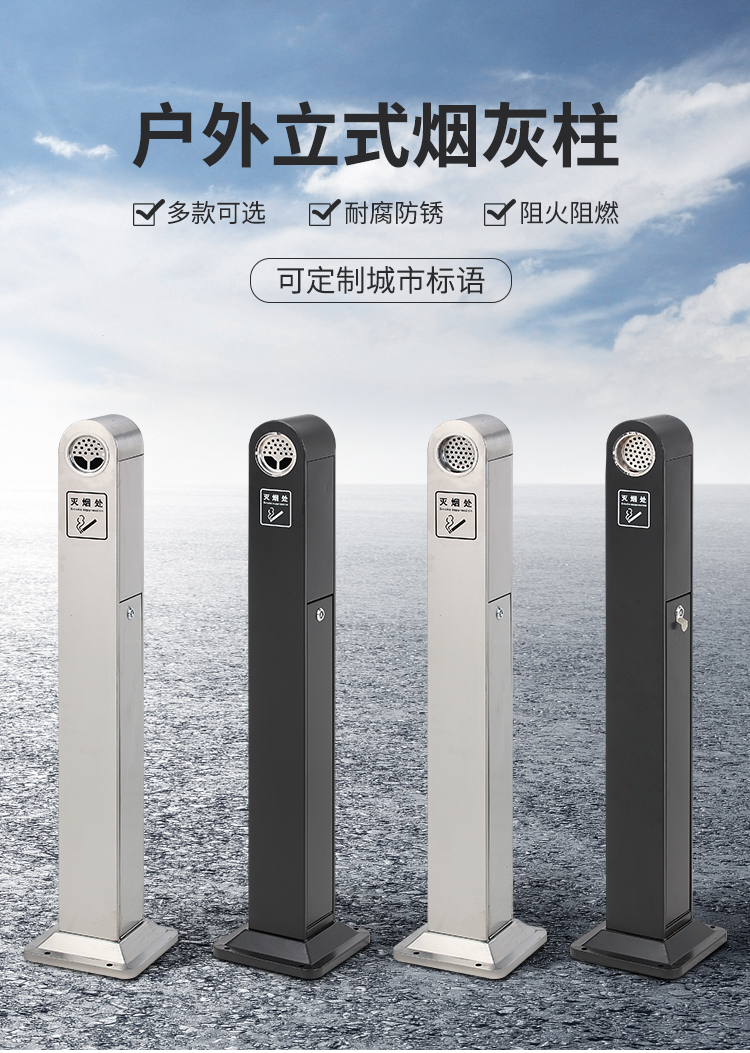 DEANS outdoor ash column vertical cigarette butt column seat ash bucket outdoor smoke extinguishing column public smoking area trash can 412B black paint