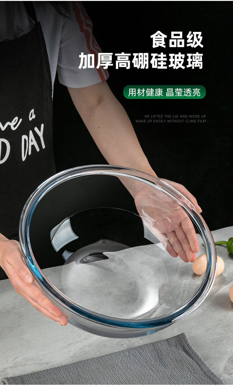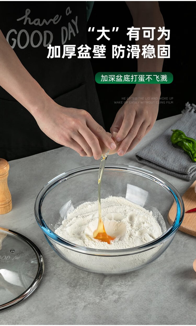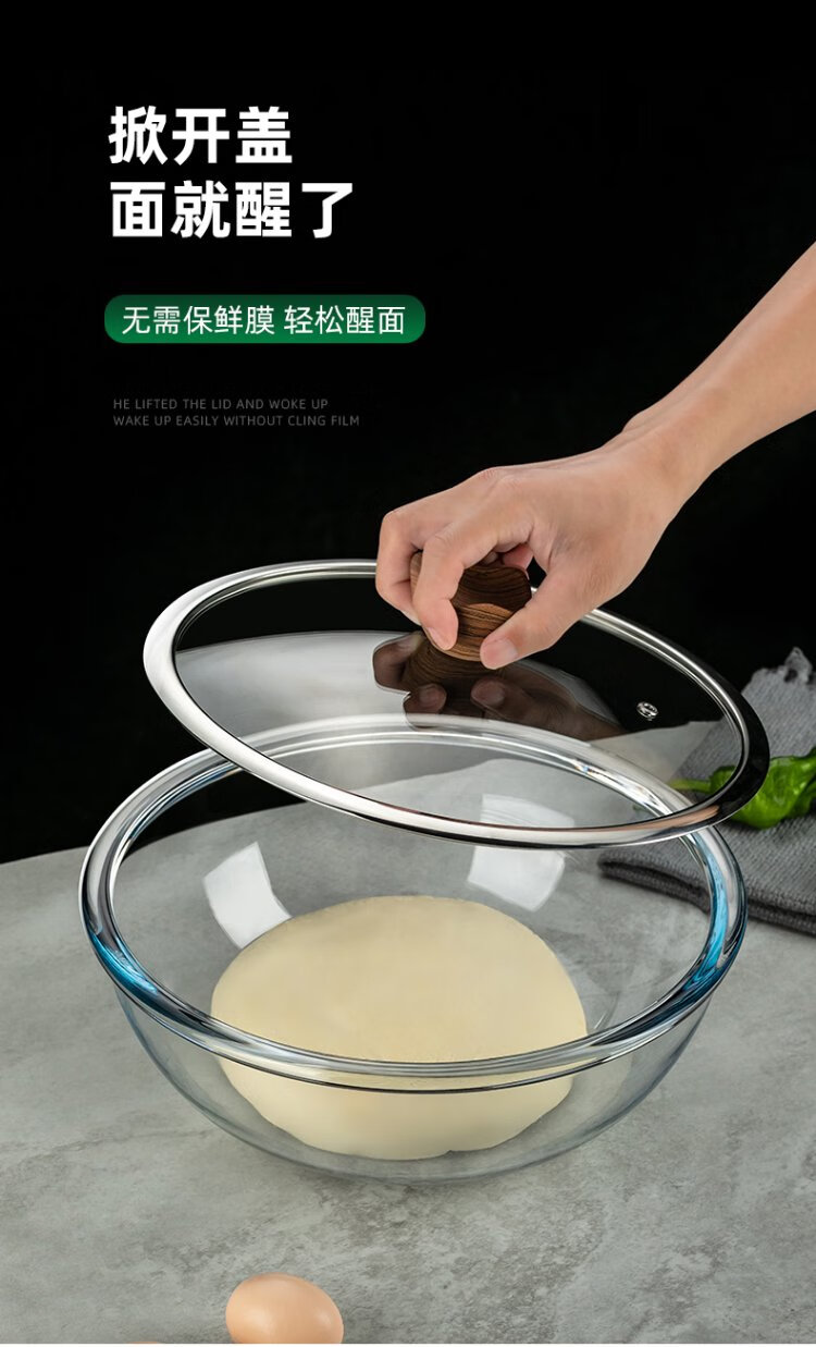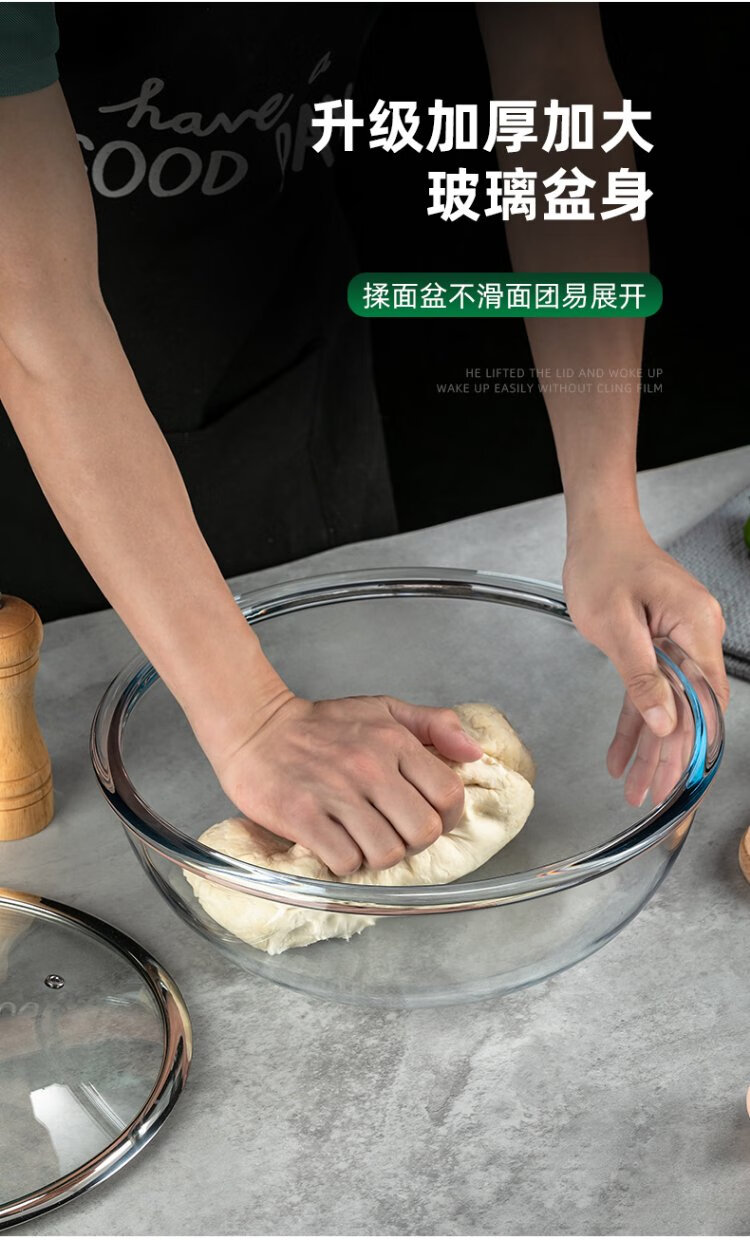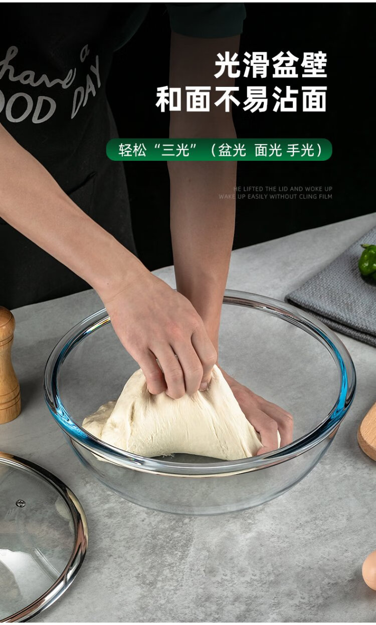 Genas glass and basin with lid household non-stick kneading basin large kitchen baking baking egg beater bowl heat-resistant bowl 5L