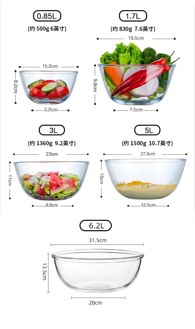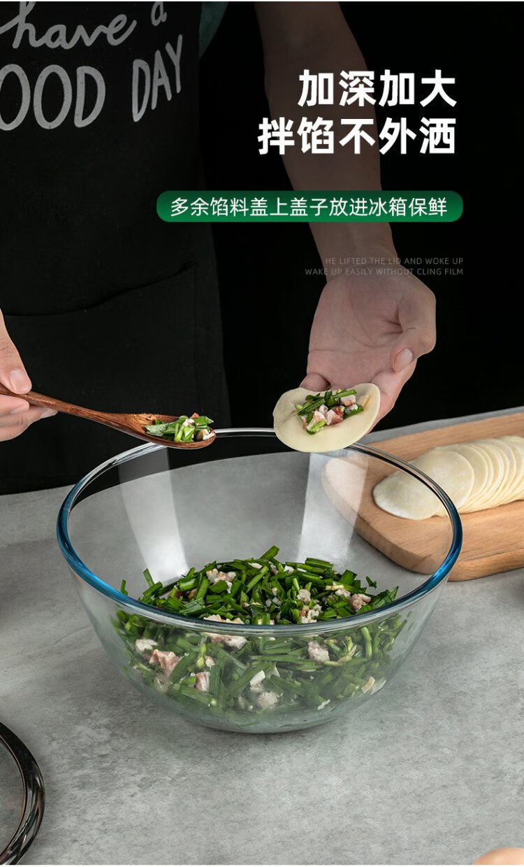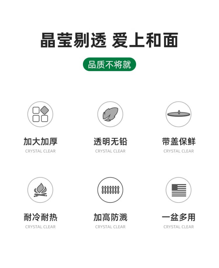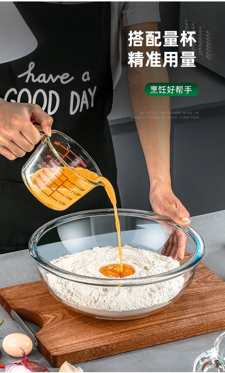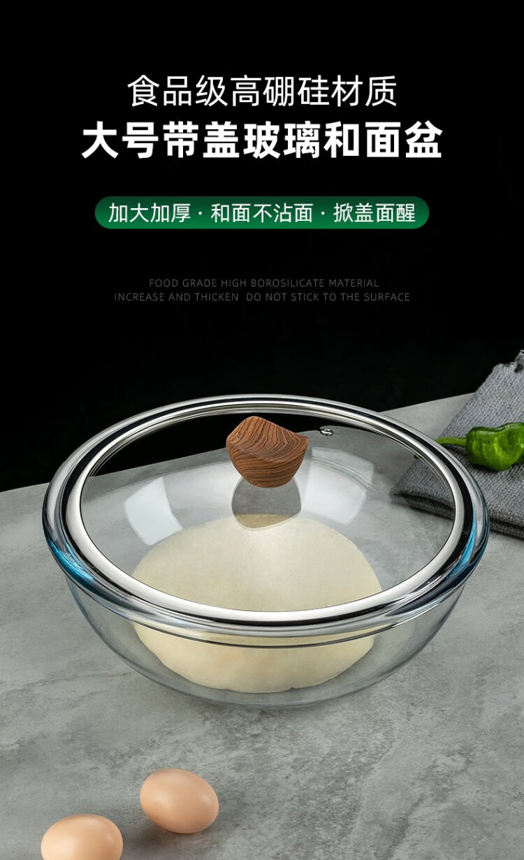 Genas glass and basin with lid household non-stick kneading basin large kitchen baking baking egg beater bowl heat-resistant bowl 5L