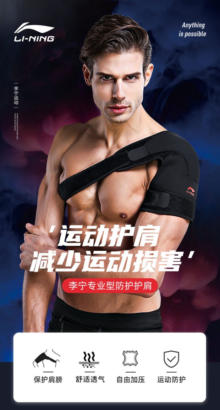 Li Ning (LI-NING) shoulder pads for men, basketball badminton fitness, adjustable breathable and pressurized sports protective gear, right shoulder, one size fits all