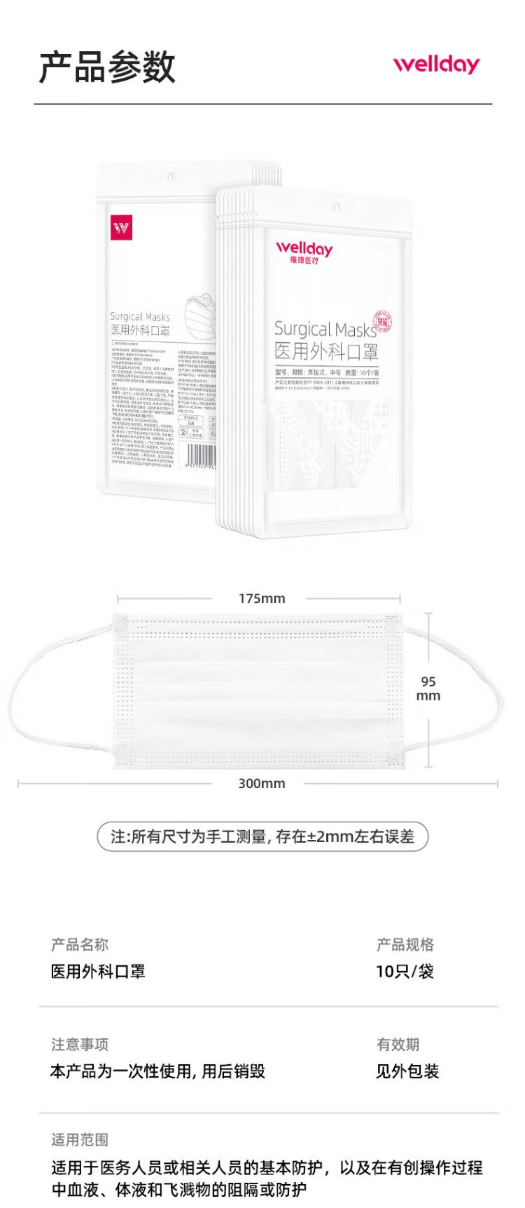 WELLDAY disposable medical surgical masks 100 pieces white anti-sand dust winter warm anti-allergic breathable sterilization grade