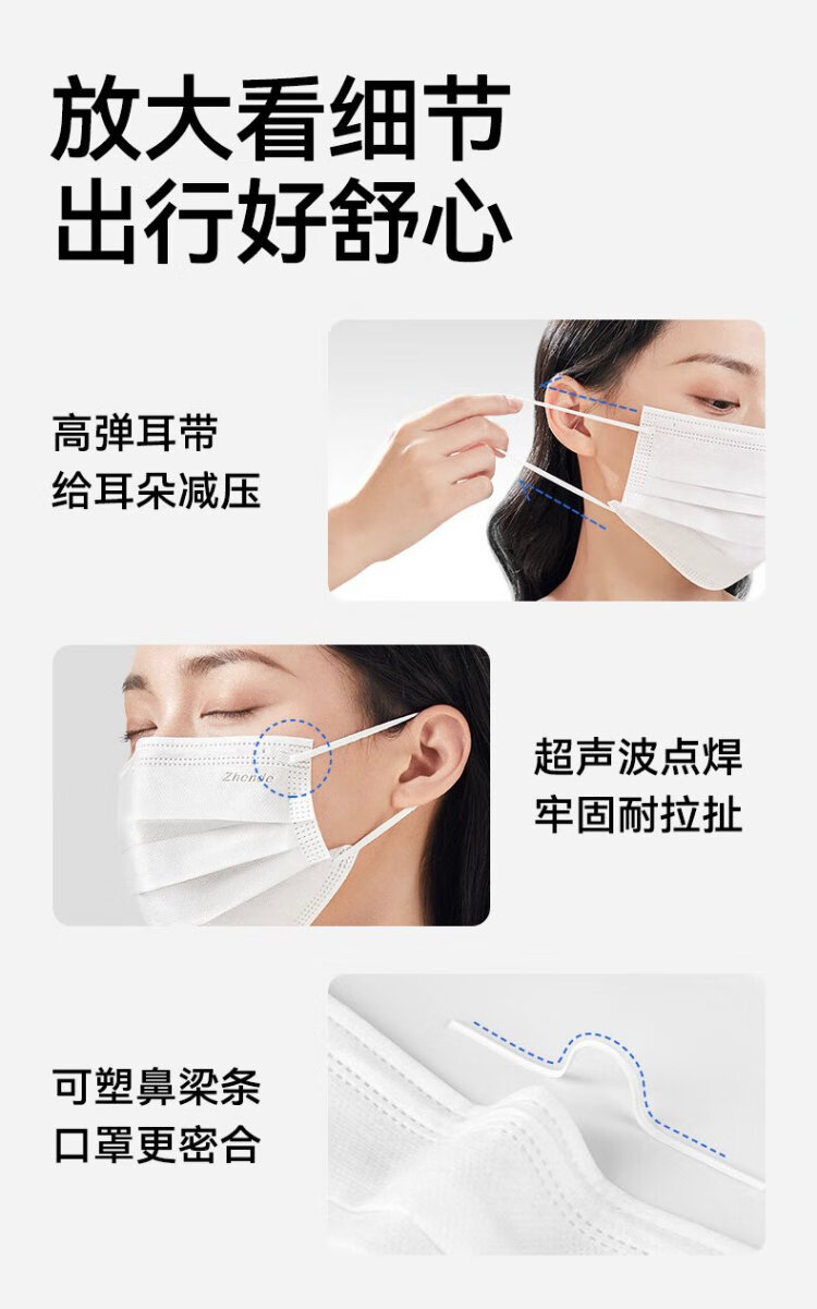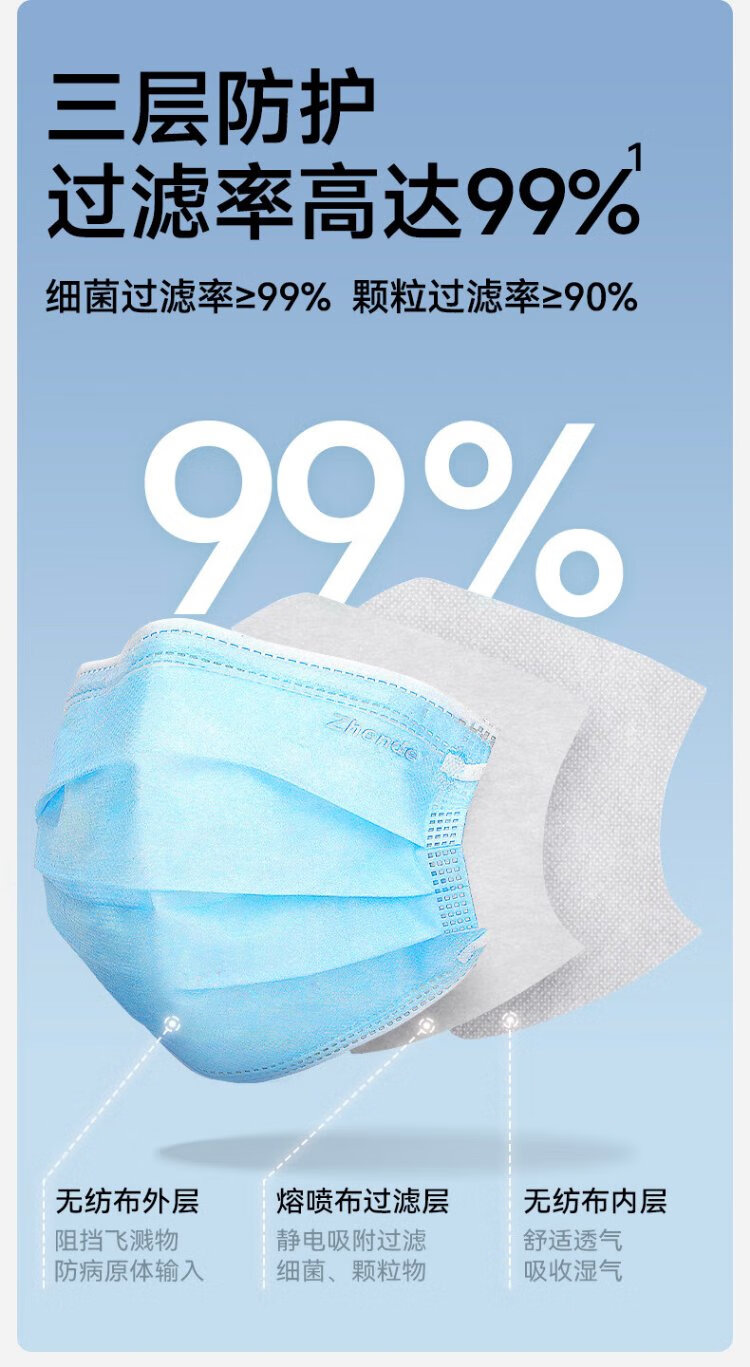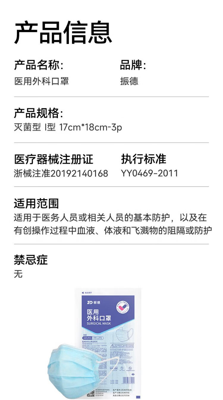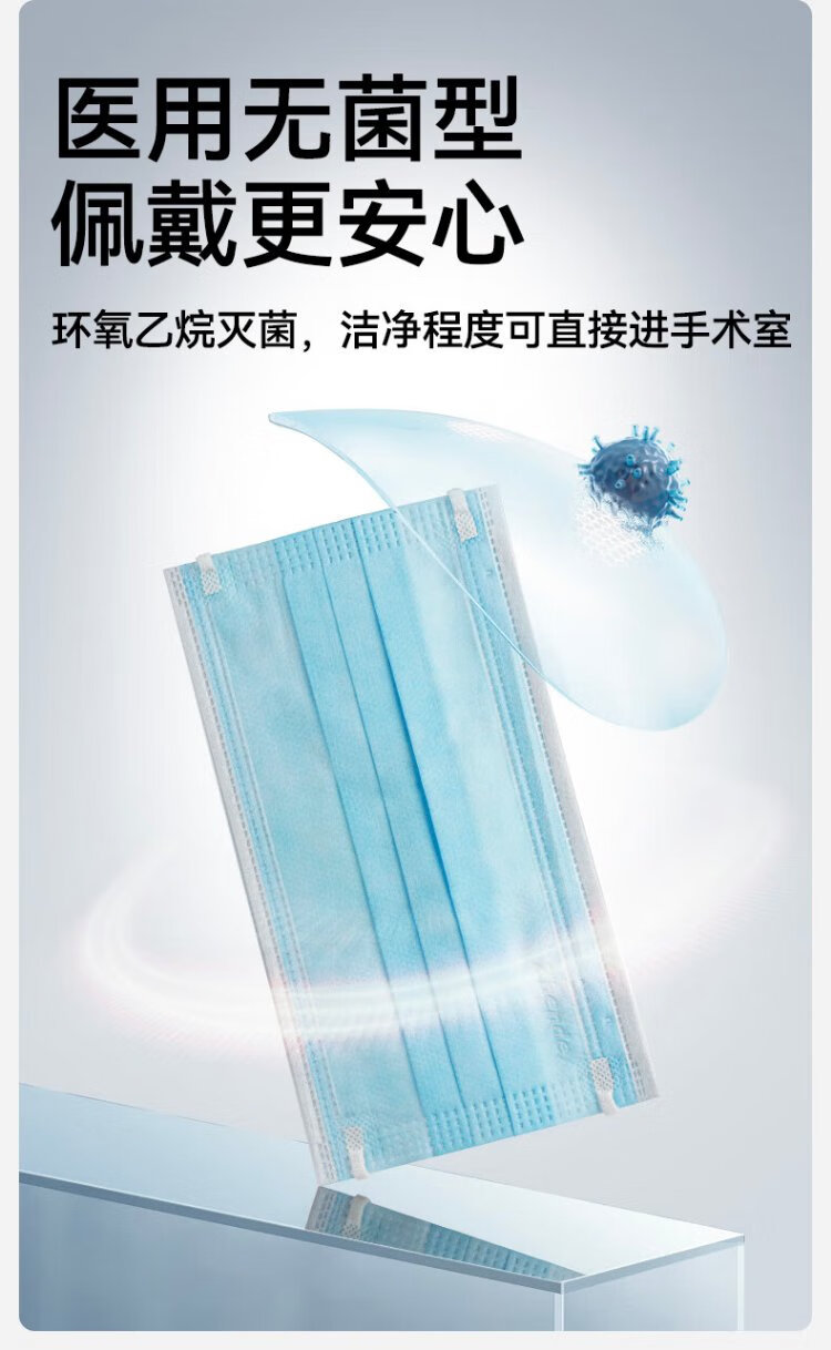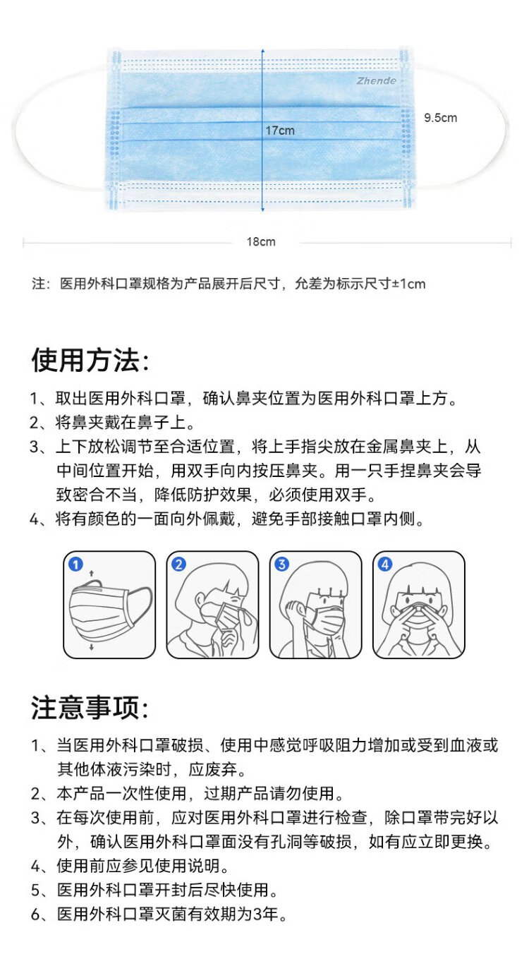 Zhende Disposable Medical Surgical Mask Sterilization Grade Breathable Adult Winter Warmth Prevent Dust Haze Allergy 100 Pieces