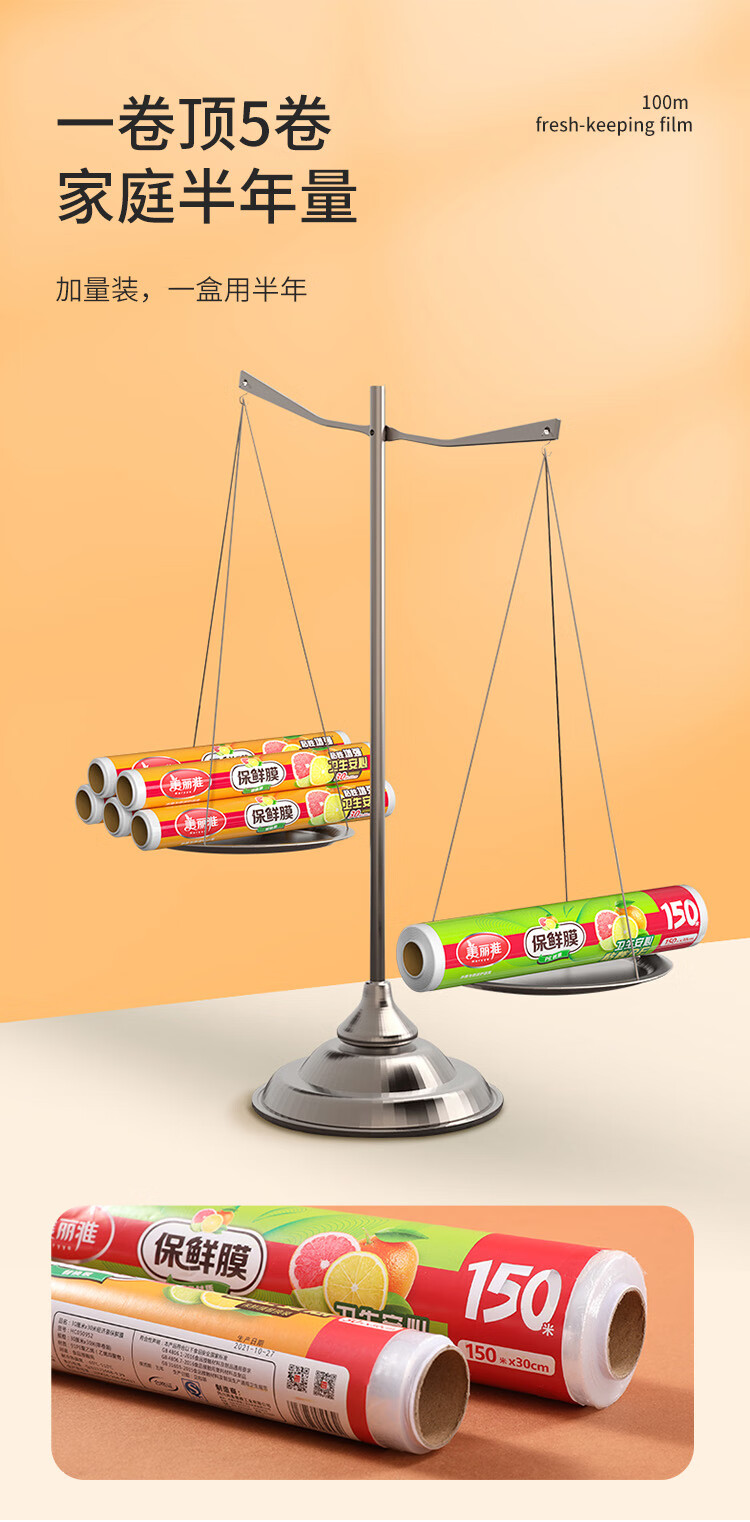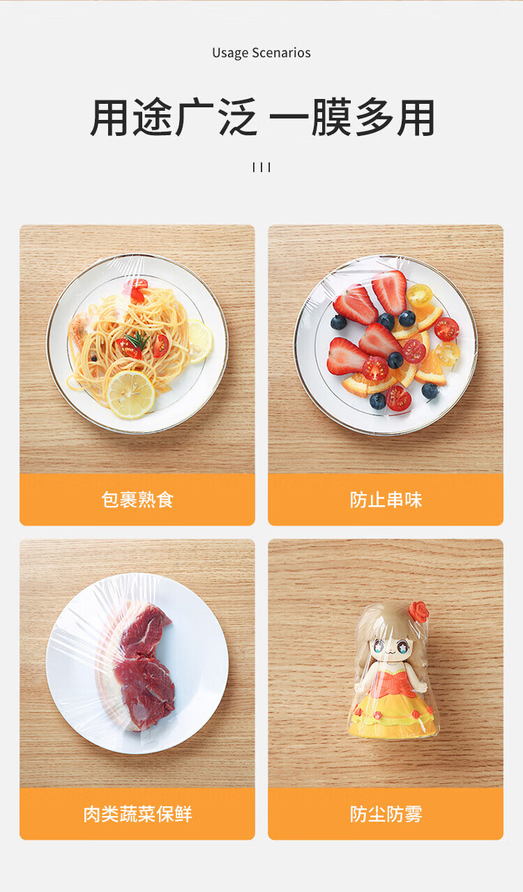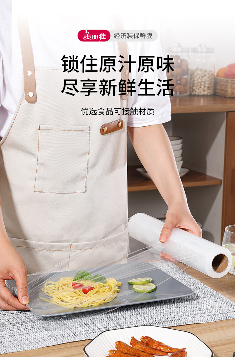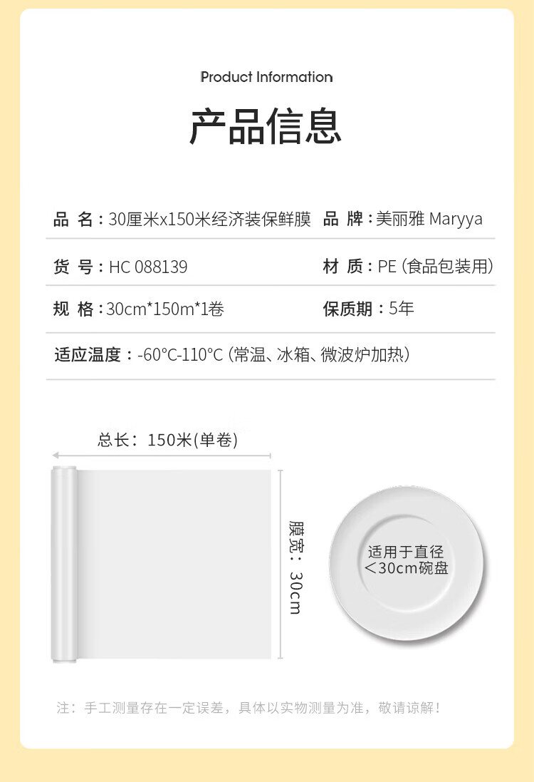 Meiya Disposable Plastic Wrap Large Economic Pack 30cm*150m Food Grade Household PE Material Safe and Hygienic