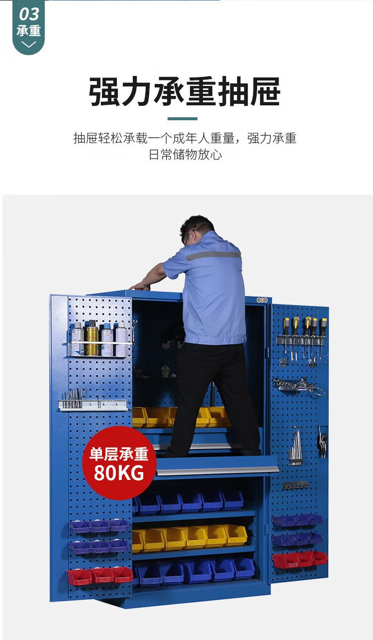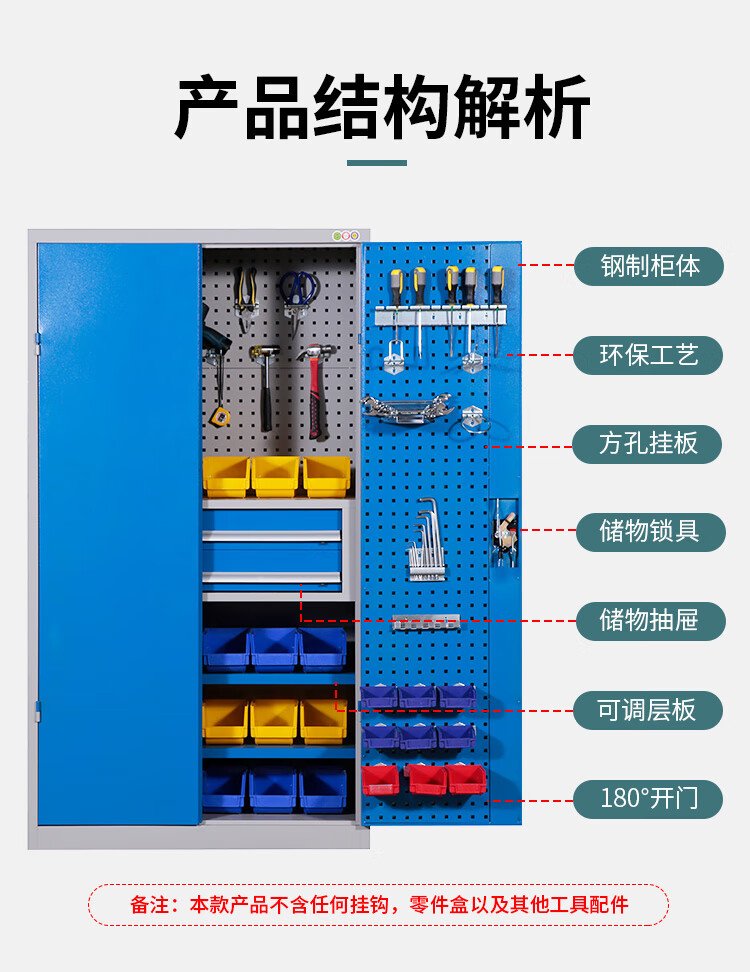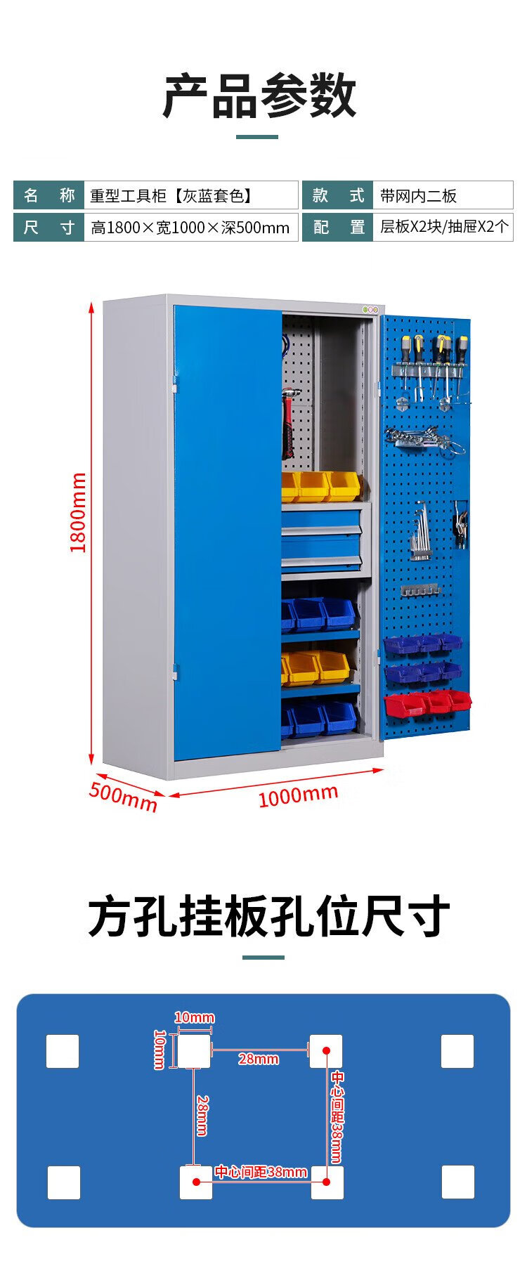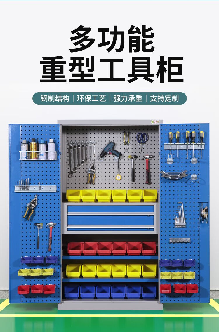 Huizhen heavy tool cabinet storage cabinet factory workshop double door tool storage cabinet with hanging plate HZ480 gray and blue color combination