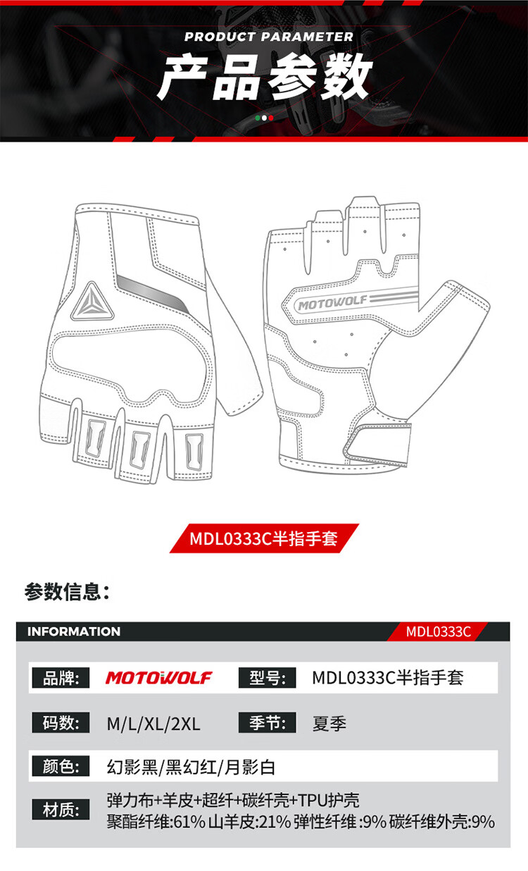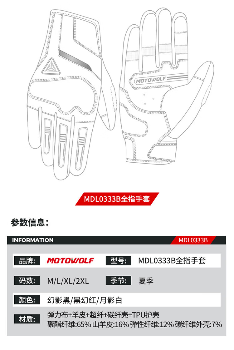 MOTOWOLF motorcycle riding gloves summer breathable carbon fiber protective shell for men and women touch screen motorcycle equipment for all seasons