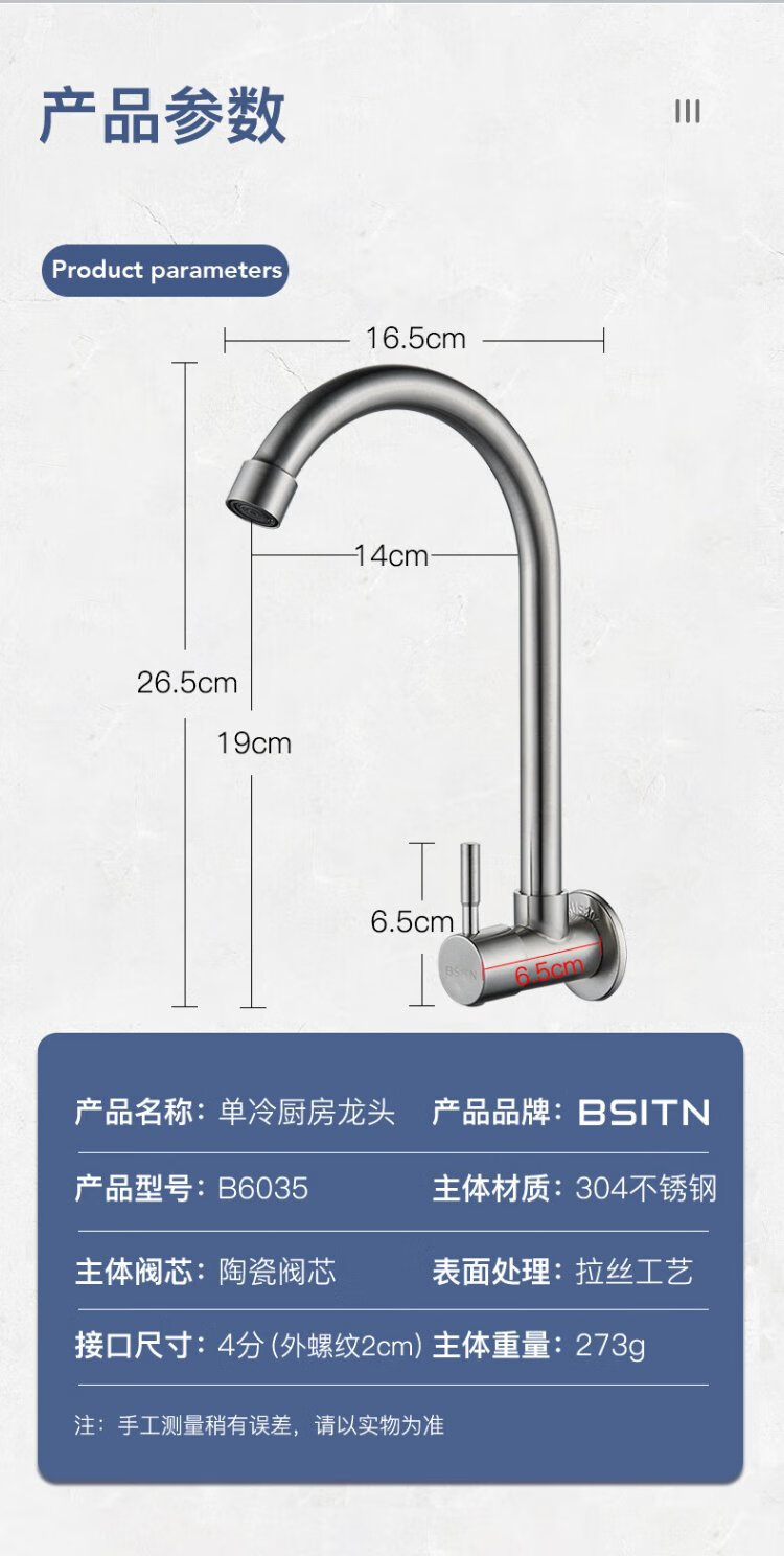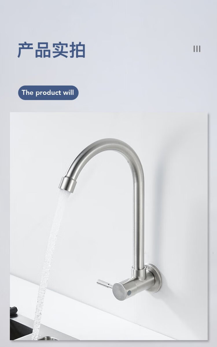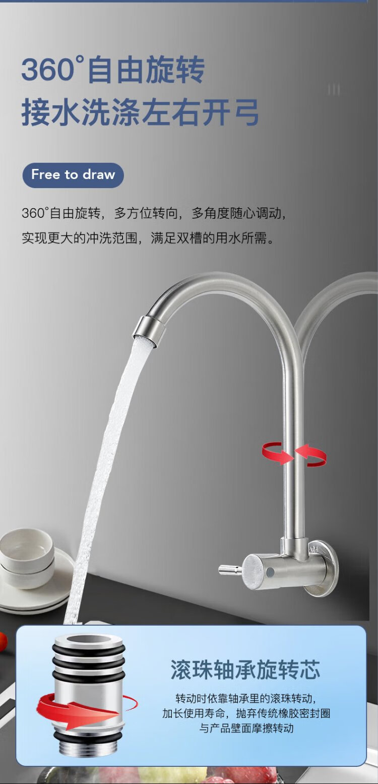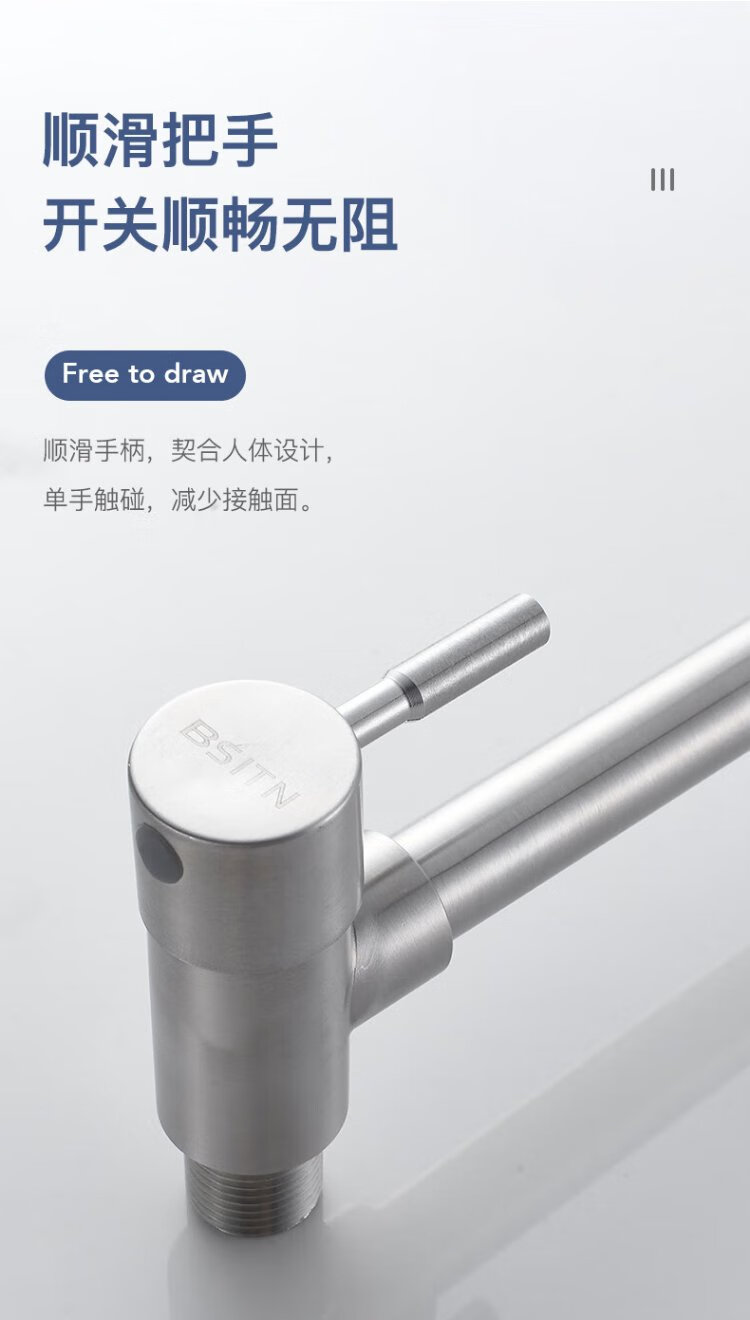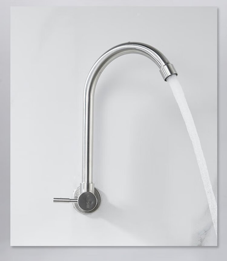 BSITN wall-mounted faucet kitchen 304 stainless steel body single cold quick opening 360 rotating sink faucet B6035