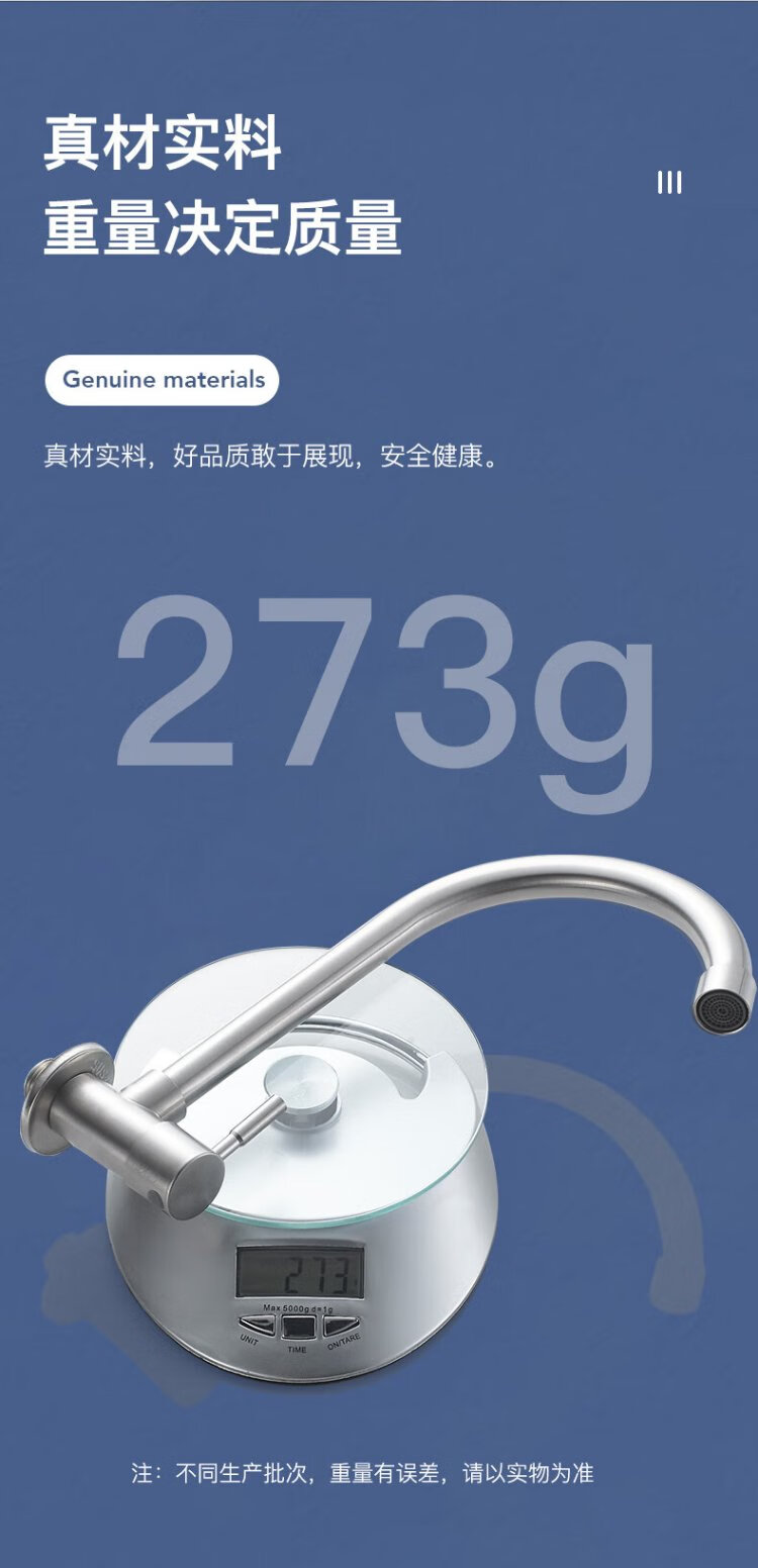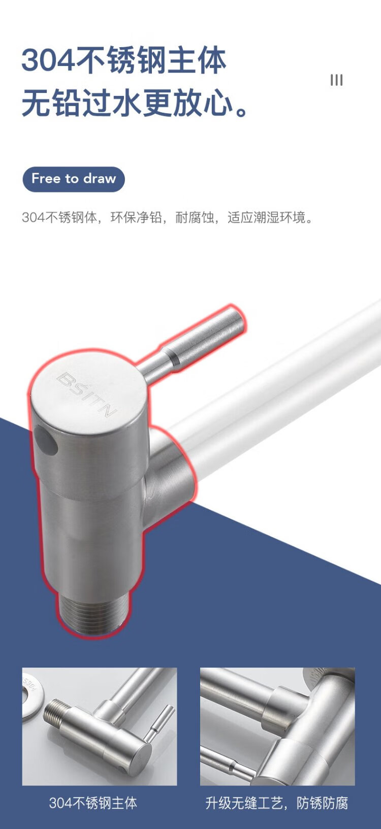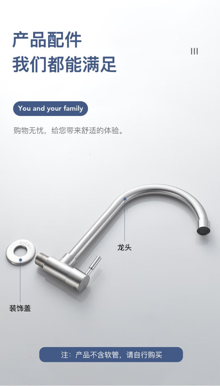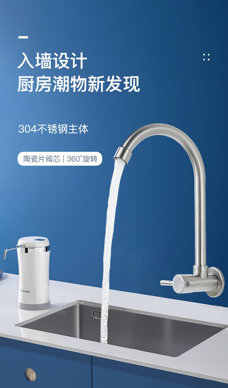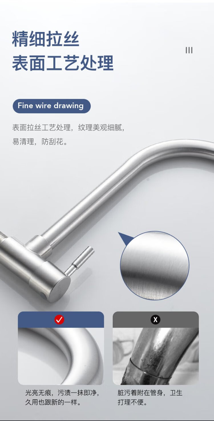 BSITN wall-mounted faucet kitchen 304 stainless steel body single cold quick opening 360 rotating sink faucet B6035