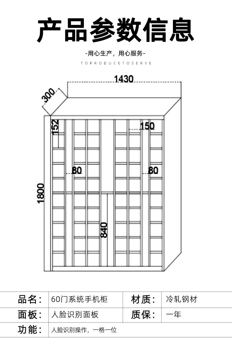 Huayu Huiyang smart face recognition mobile phone cabinet 60 doors main cabinet 1800*1430*300mm