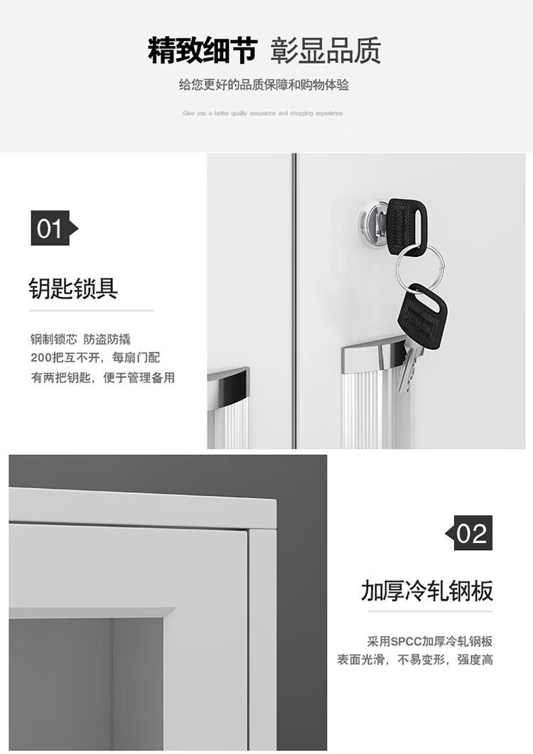 Yuwei Office File Cabinet File Storage Cabinet Iron Cabinet Through Glass Cabinet TW-TBWJG 850*390*1800mm Desk