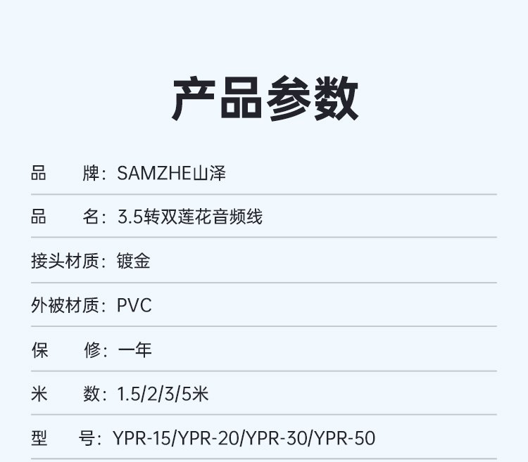 Shanze 3.5mm to double lotus head audio cable one-half red and white 2RCA connecting cable mobile phone computer TV connection audio box amplifier conversion cable 2 meters YPR-20
