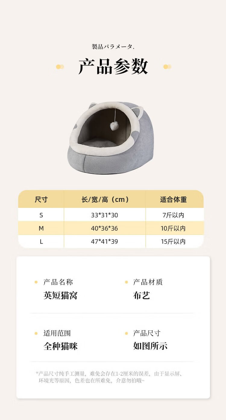 Meow Xianer Cat House Four Seasons Universal Semi-Enclosed Dog House Mongolian Yurt Cat House Warm Small Dog Pet Supplies Code