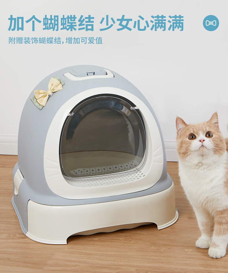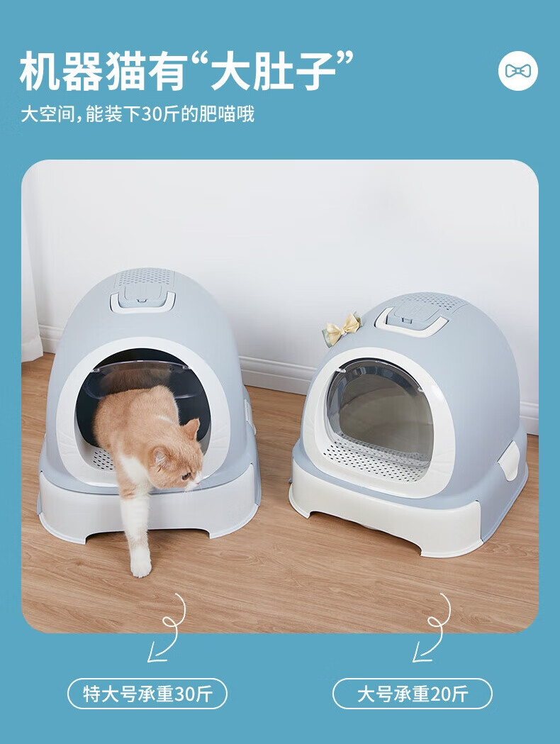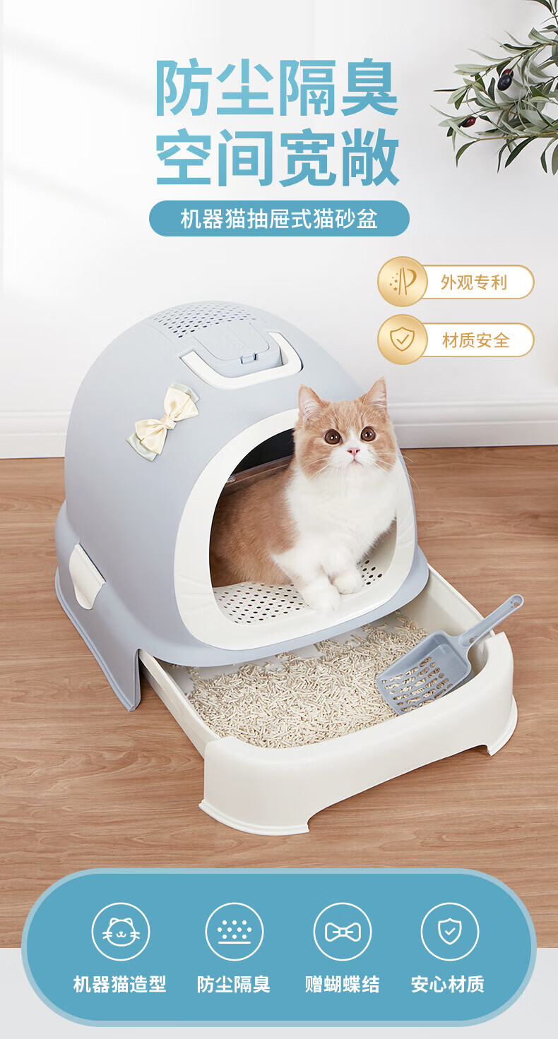 Meika classic doraemon fully enclosed cat litter box extra large anti-splash and odor isolation large space cat toilet potty sapphire color
