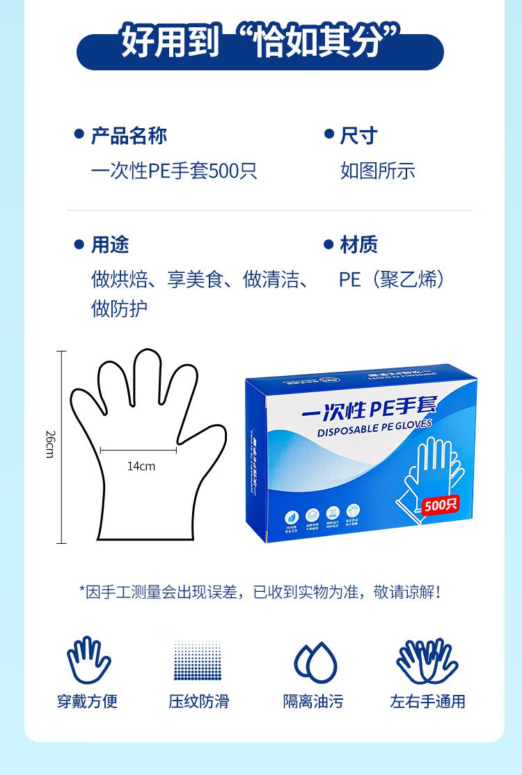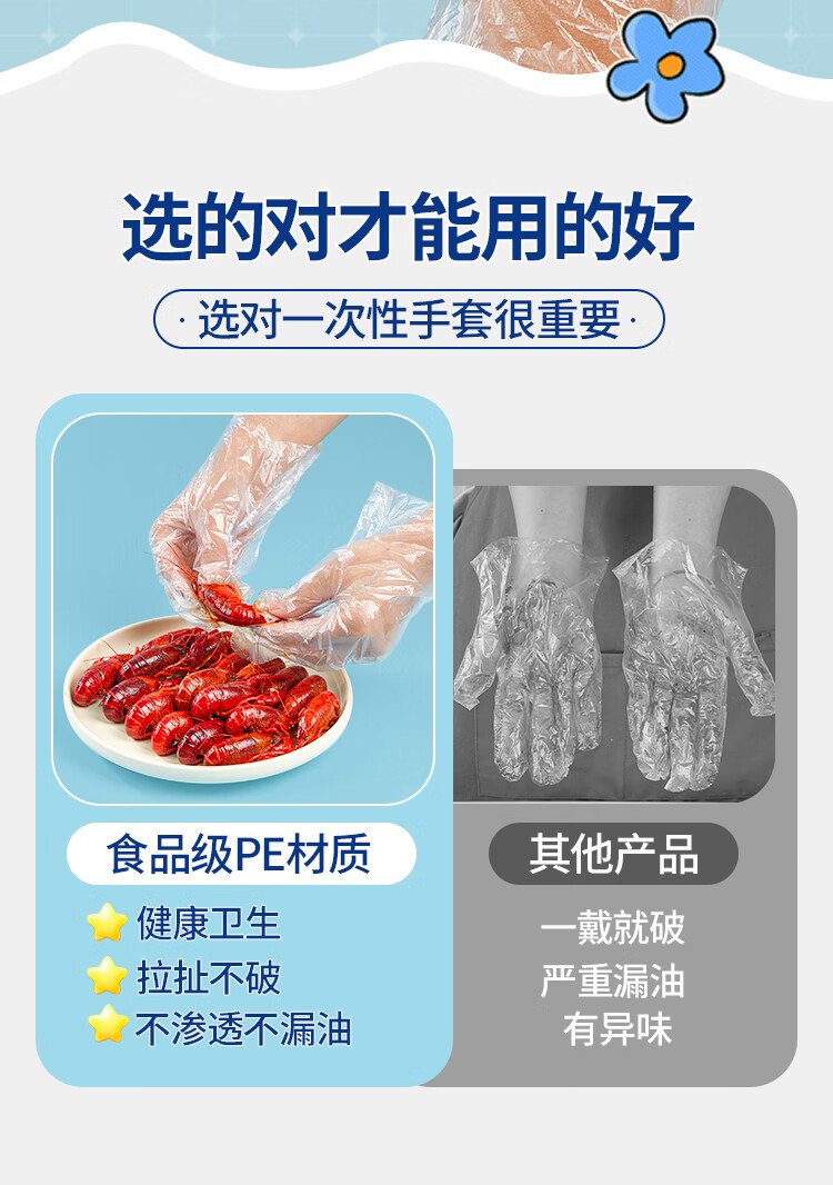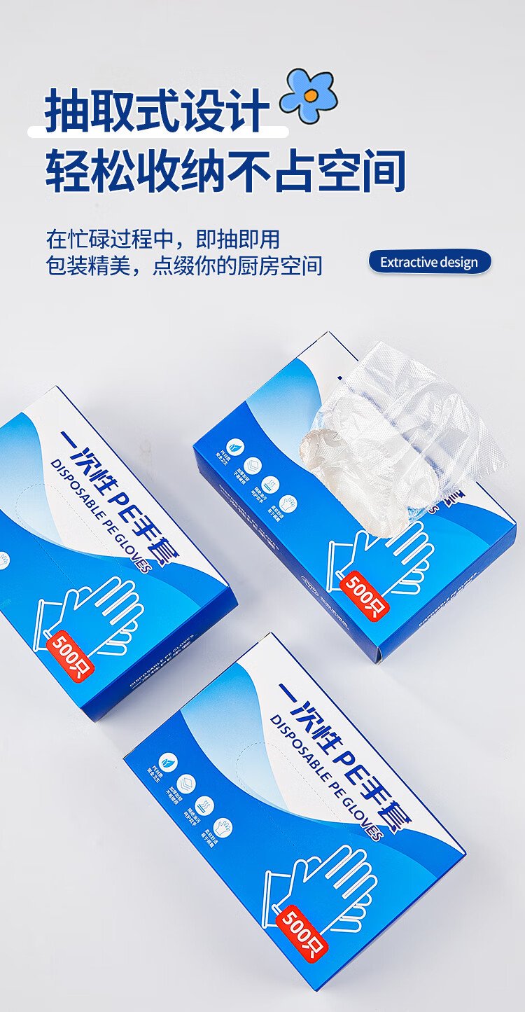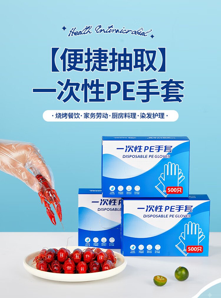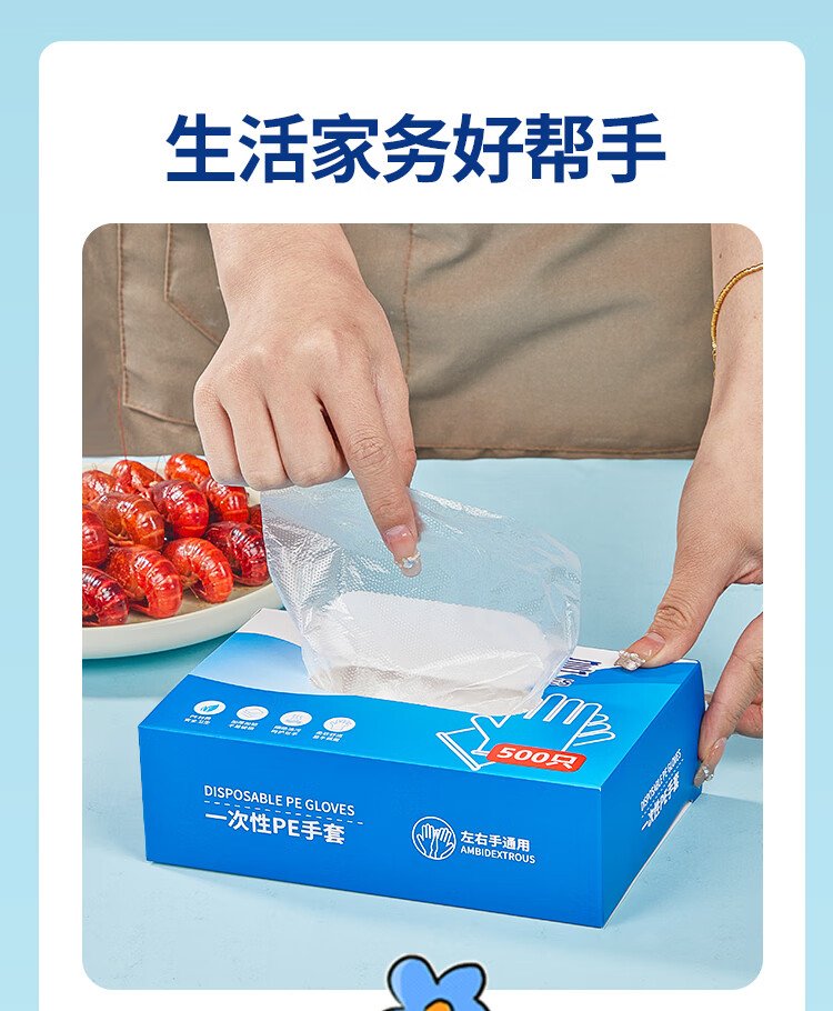 SHUANG YU disposable gloves 500 pieces food grade gloves leak-proof PE sanitary gloves thickened plastic transparent gloves