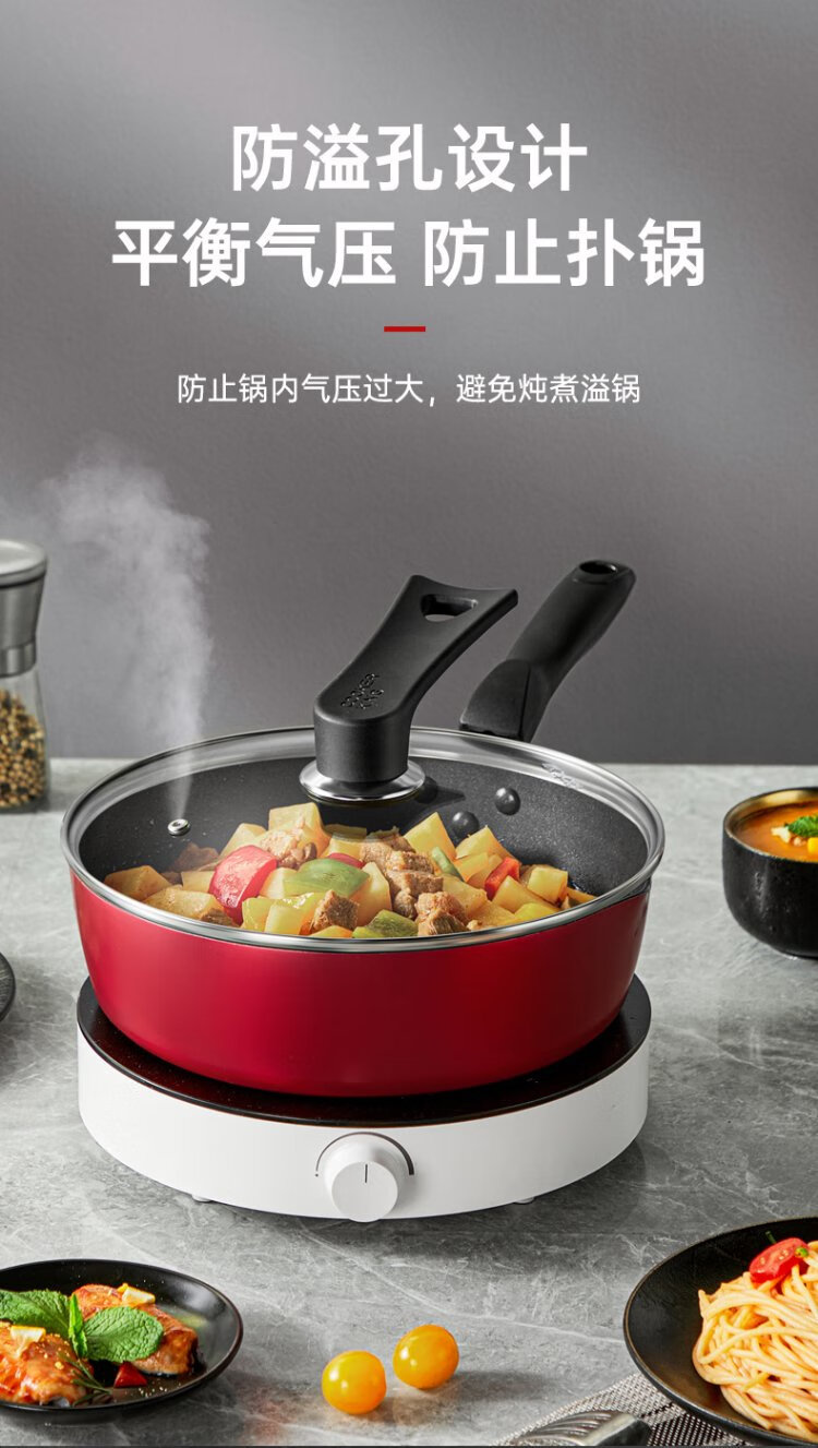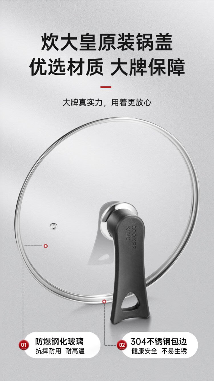 Cui Dahuang 24cm 304 stainless steel rimmed frying pan, hot pot and steamer with stand-up visible glass lid and handle, explosion-proof