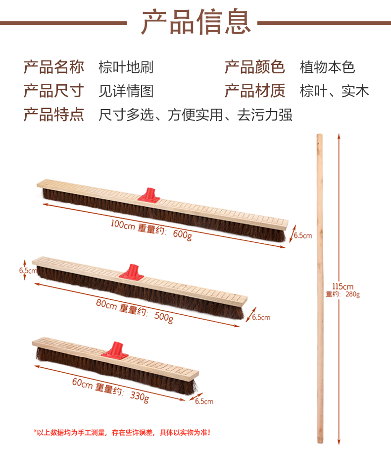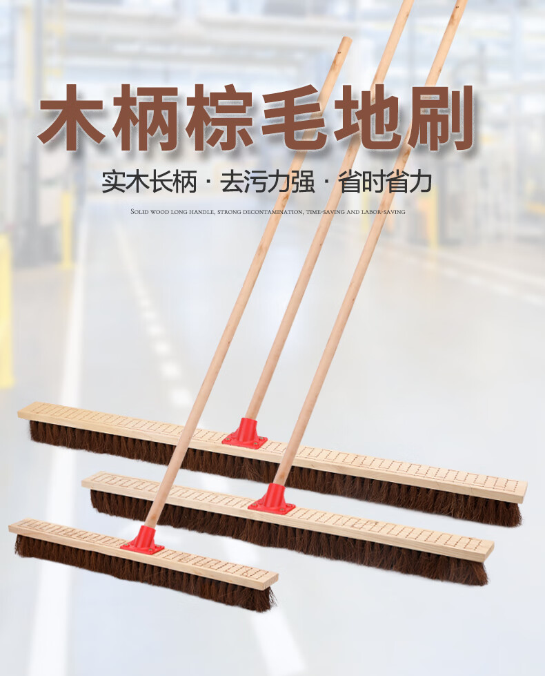 Kanglia K-1358 brown bristle floor brush wooden handle soft bristle wood floor brush cleaning scrubbing brush 80CM