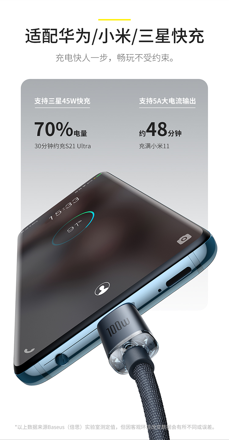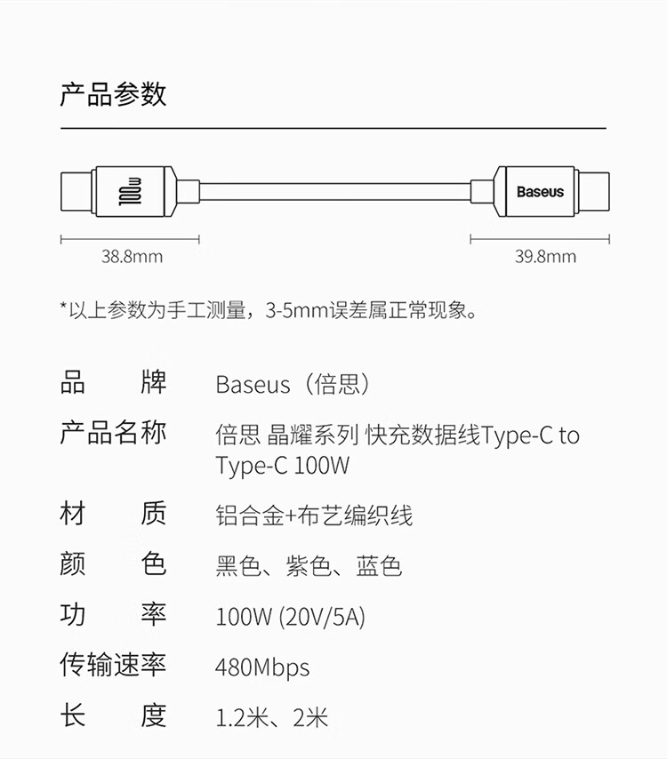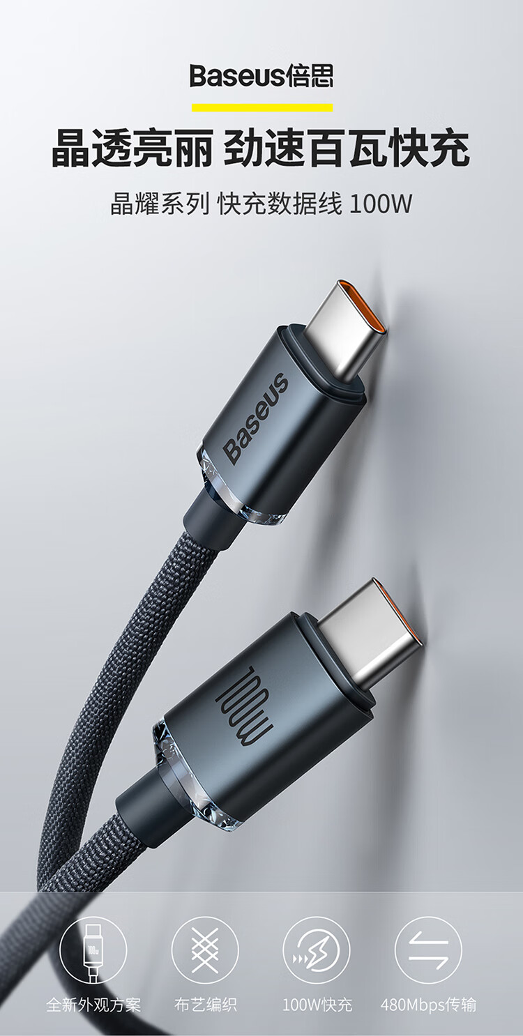Baseus 100W dual Type-C data cable fast charging cable ctoc charging cable 5A Apple 15/16/17 mobile phone iPad/macbook Huawei laptop