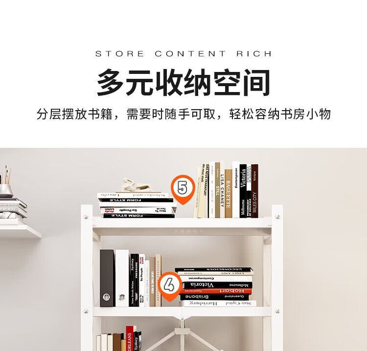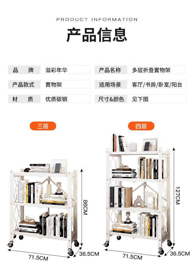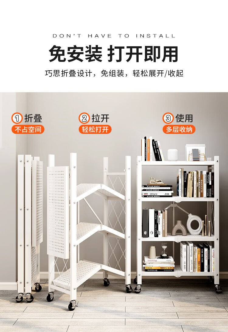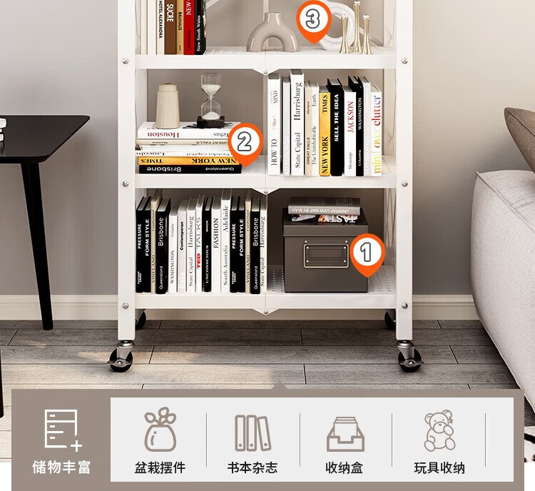 Yicai Nianhua bookshelf floor-standing living room installation-free device rack removable folding iron bookcase book storage shelf 6060
