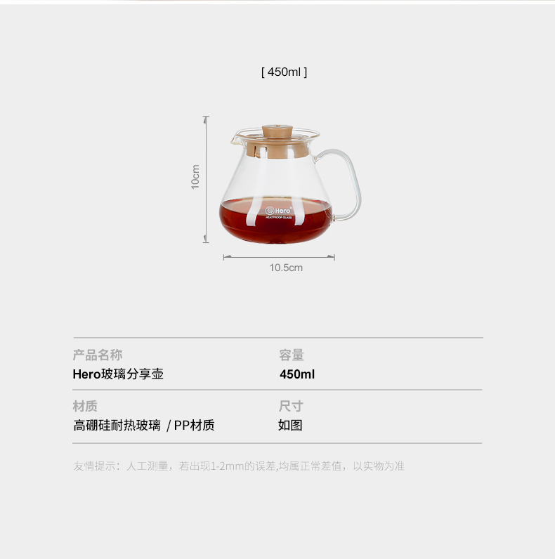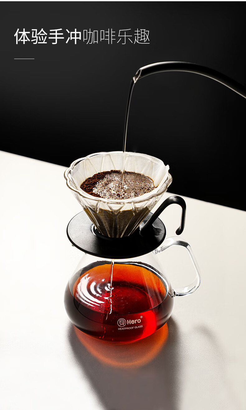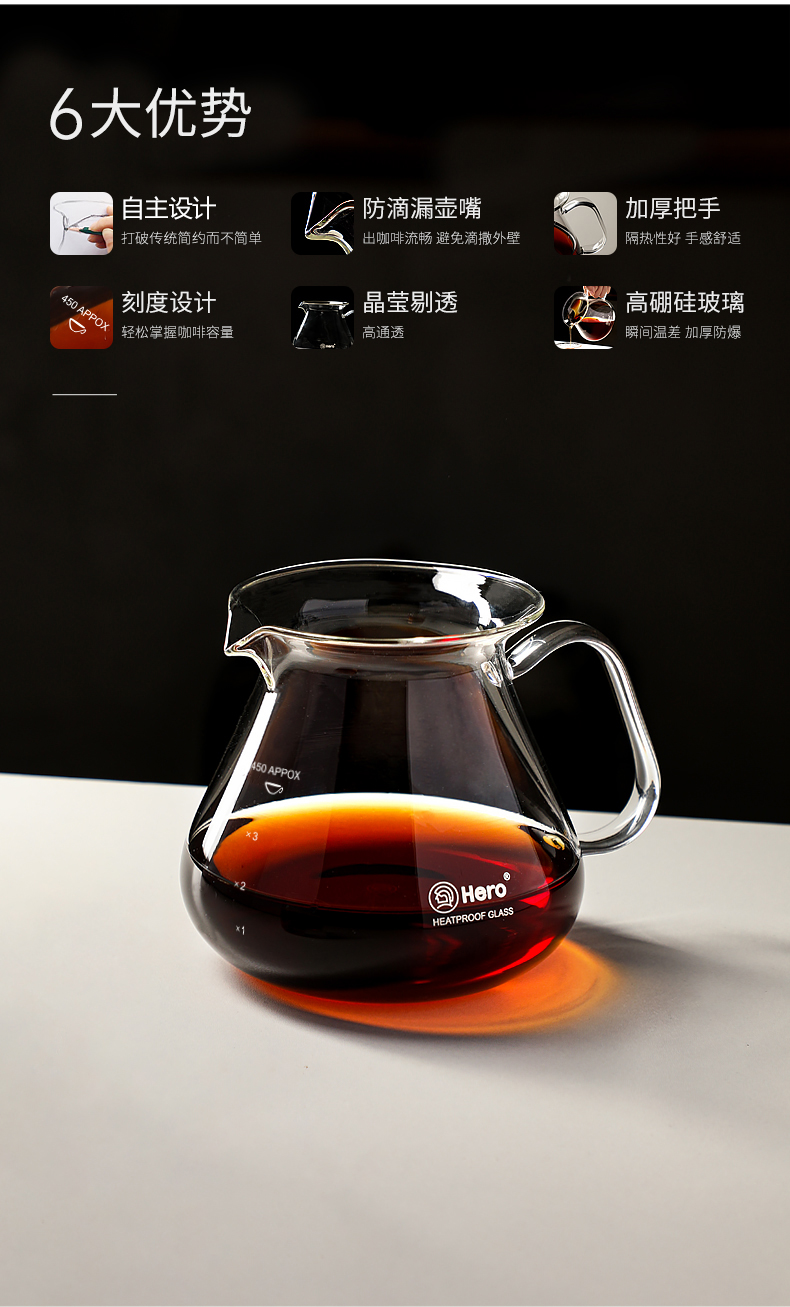 Hero hand brewed coffee pot glass heatable high temperature resistant glass coffee pot set home sharing pot 450ml