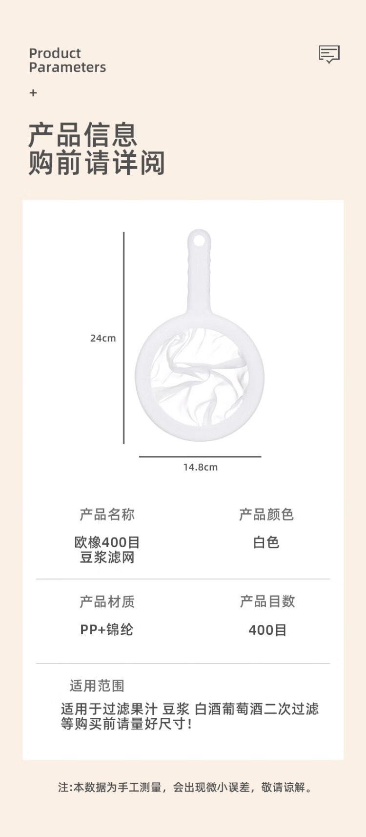 OAK soy milk filter ultra-fine household filter screen slag artifact filter bag 400 mesh C928