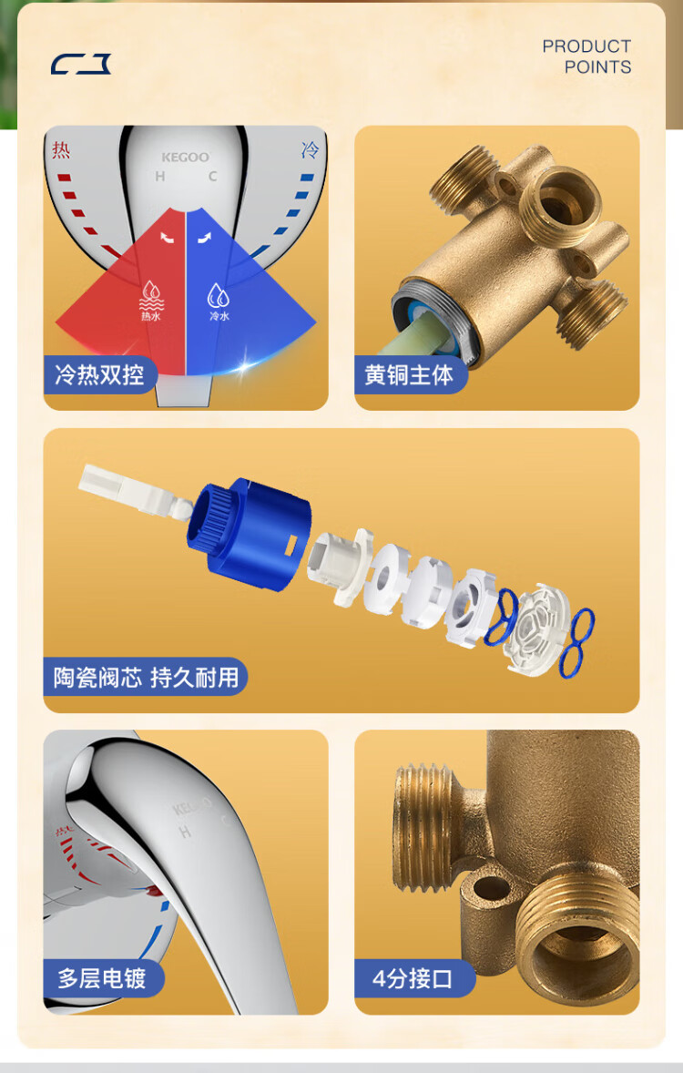 KEGOO surface-mounted mixing valve wall-mounted shower faucet bath shower switch bathroom hot and cold water mixer K220712