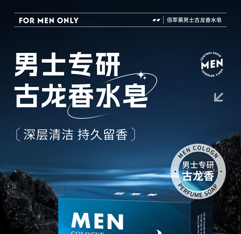 Baicuilai Cologne Soap Men's Perfume Soap Handmade Essential Oil Long-lasting Fragrance Go to Wash Your Face and Take a Bath Two-in-One Soap *5 Boxes