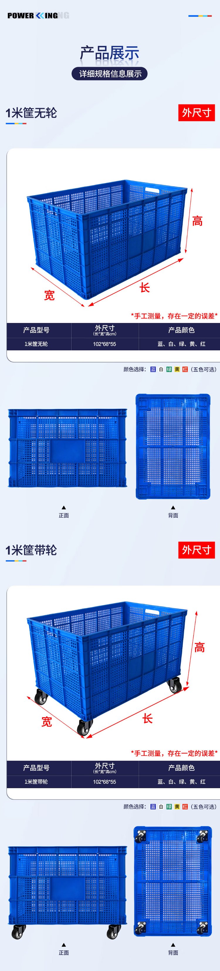 Liwang POWERKING plastic basket rectangular extra large frame thickened turnover frame express fruits and vegetables 880*610*520 can be customized