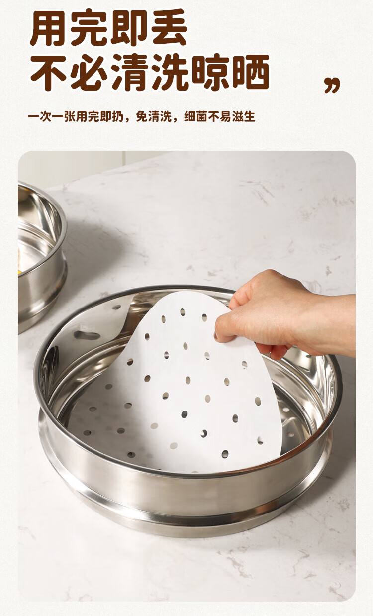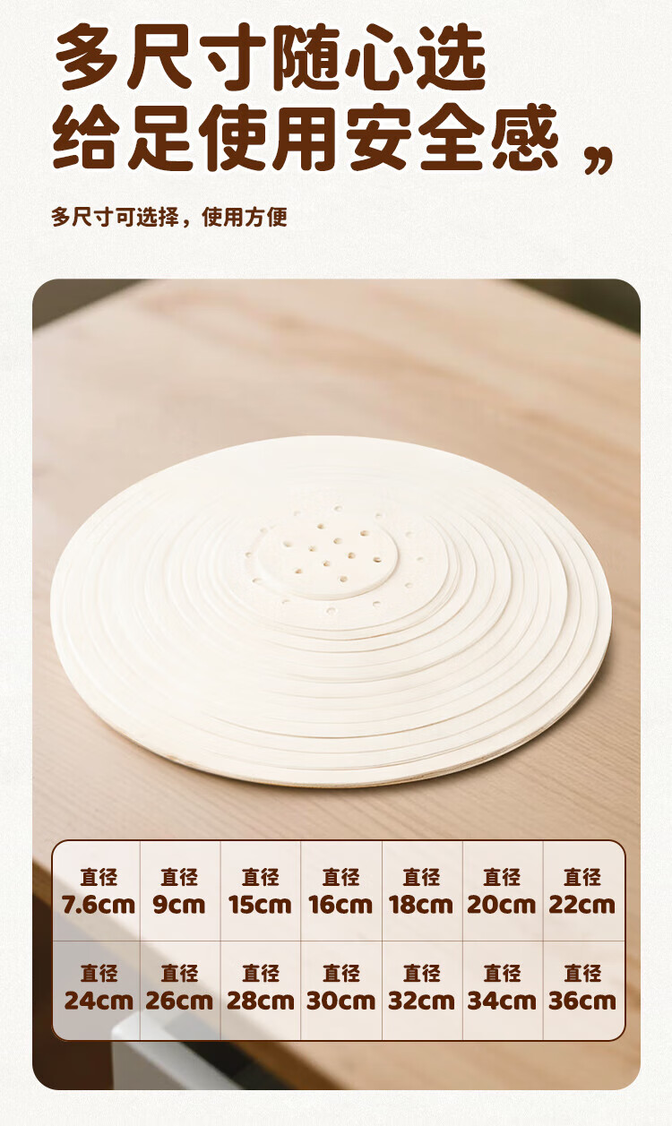MAXCOOK steamer paper bun pad paper steamed bun paper steamer drawer paper disposable 100 sheets diameter 20cm MCPJ4261