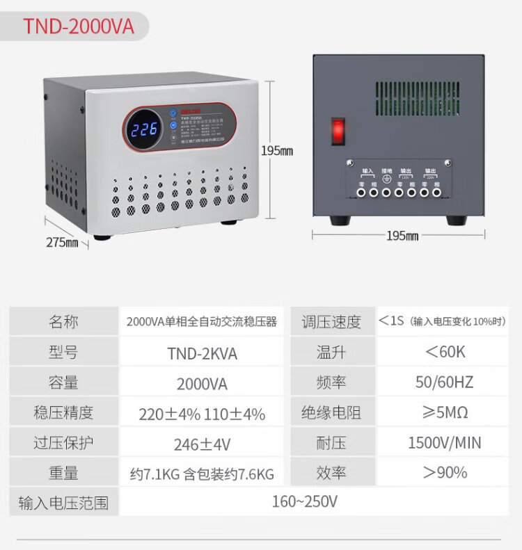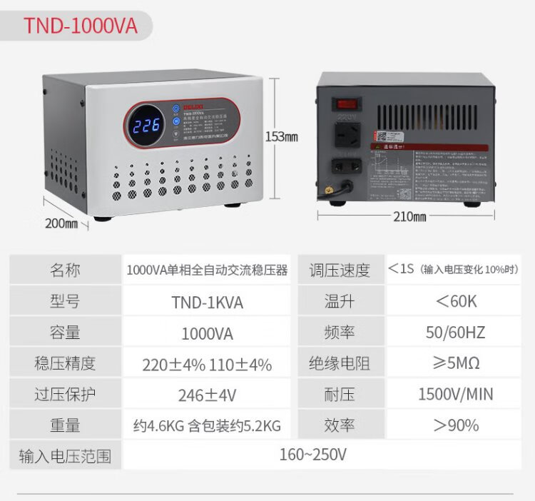 Delixi Electrical Voltage Stabilizer Home 220V Fully Automatic AC Power Stabilizer TND Series 1500W