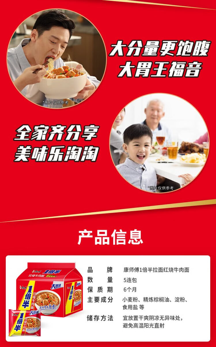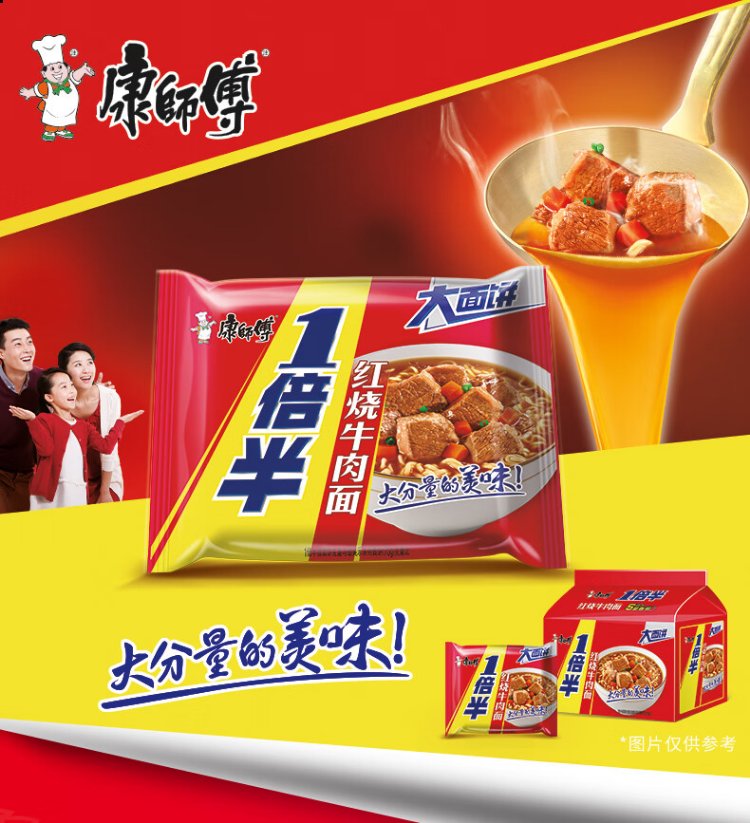 Master Kong Instant Noodles One and a Half Braised Beef Noodles 5-pack 129g*5 Instant Noodles in Bags Large Noodles