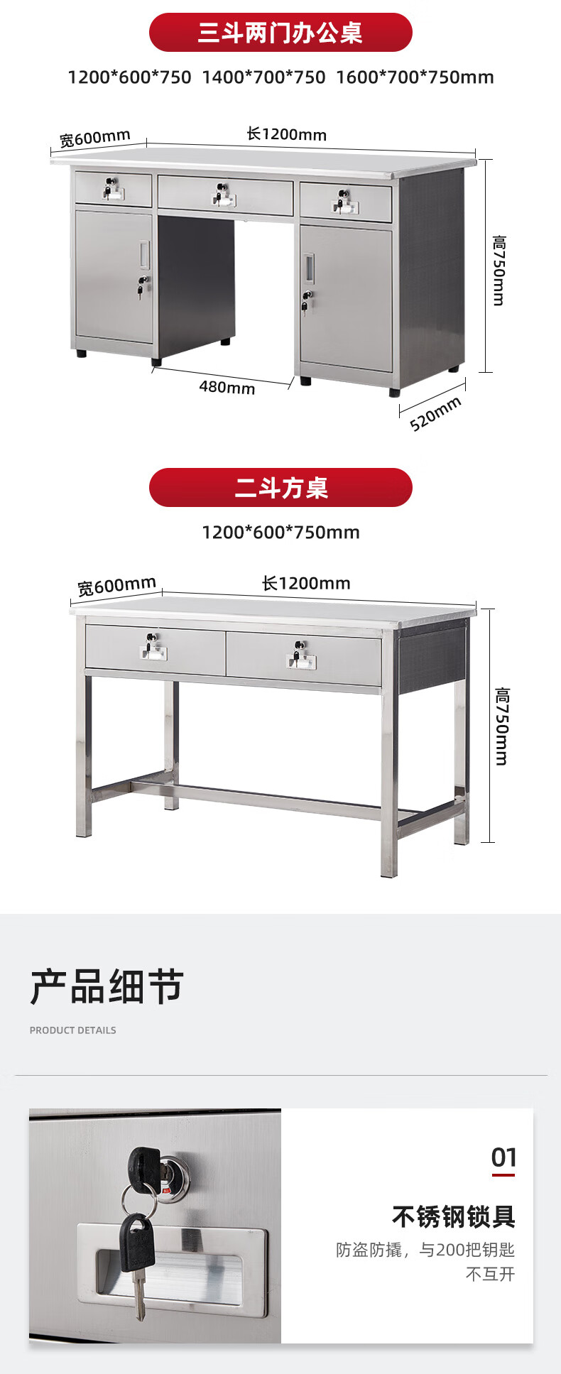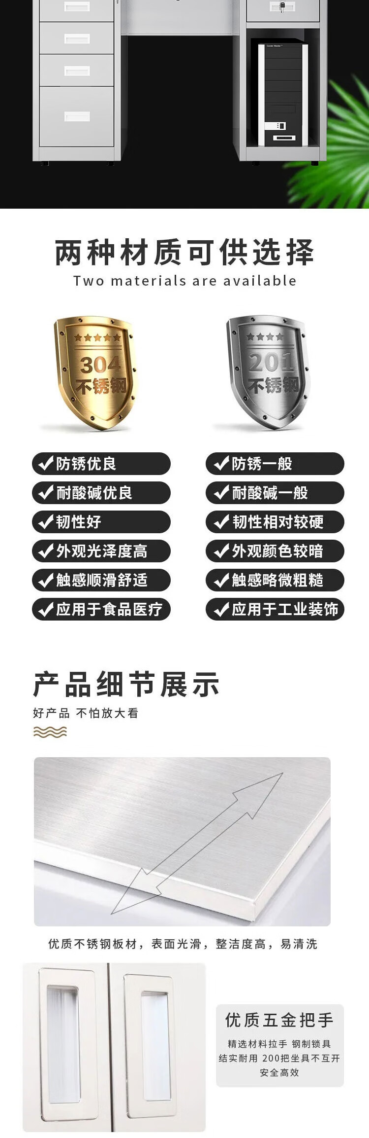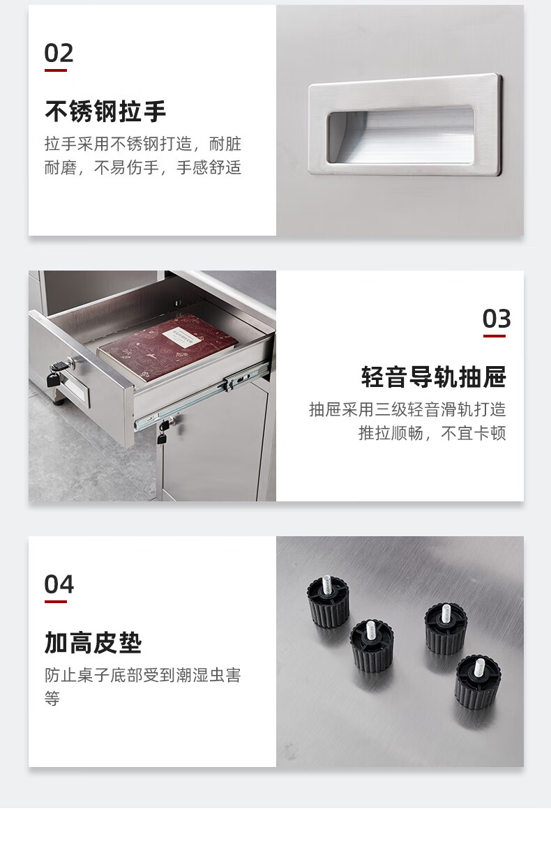 Kington 304 stainless steel desk dust-free workshop workbench laboratory console experimental table three buckets and two doors 1600*700*750mm