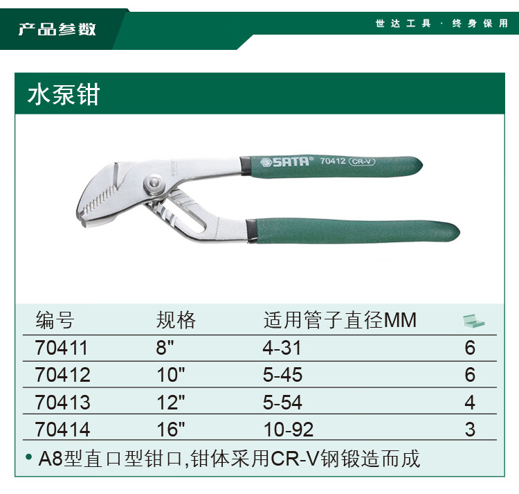 SATA 70413 water pump pliers 12