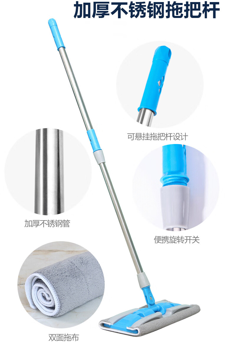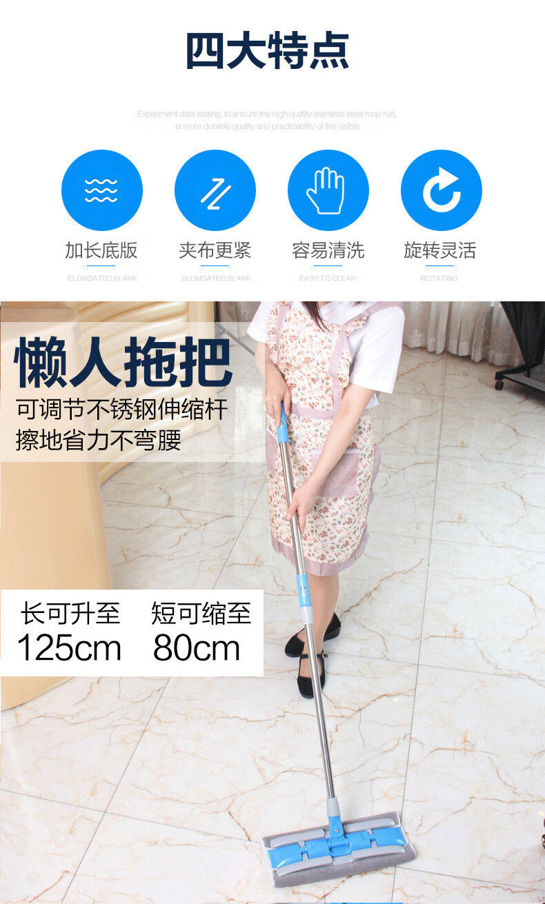 Kanglia K-1376 stainless steel telescopic rod clip cloth mop hotel commercial dust mop khaki mop + two pieces of cloth + scraper