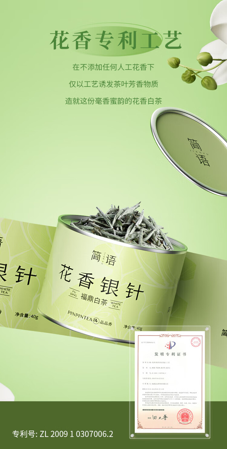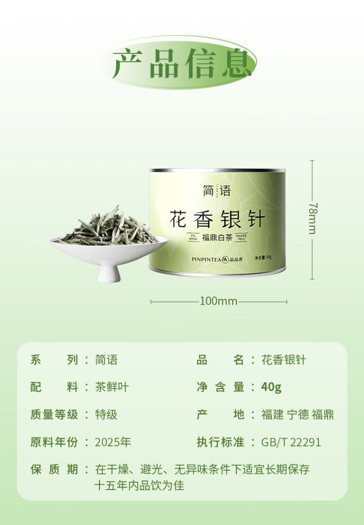 Pinpinxiang Tea Fuding White Tea 2025 Mingqian Silver Needle White Tea Jianyu Huaxiang White Tea 40g