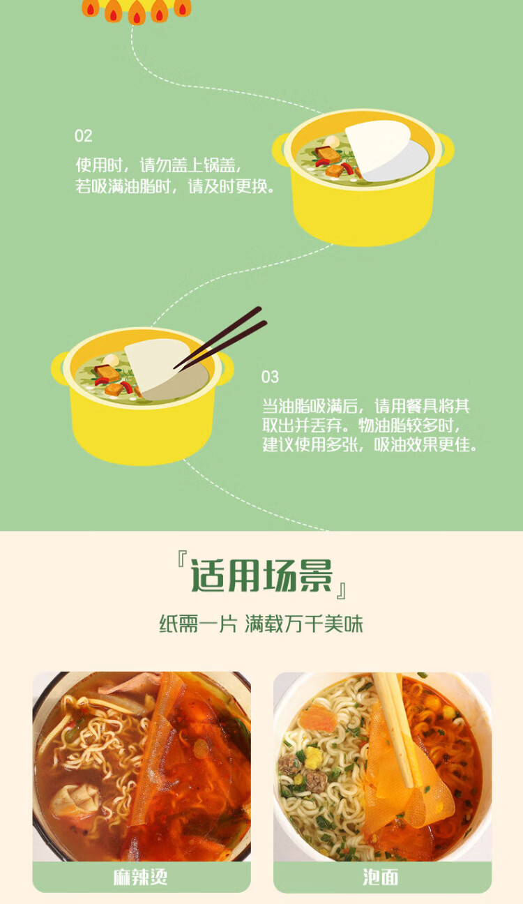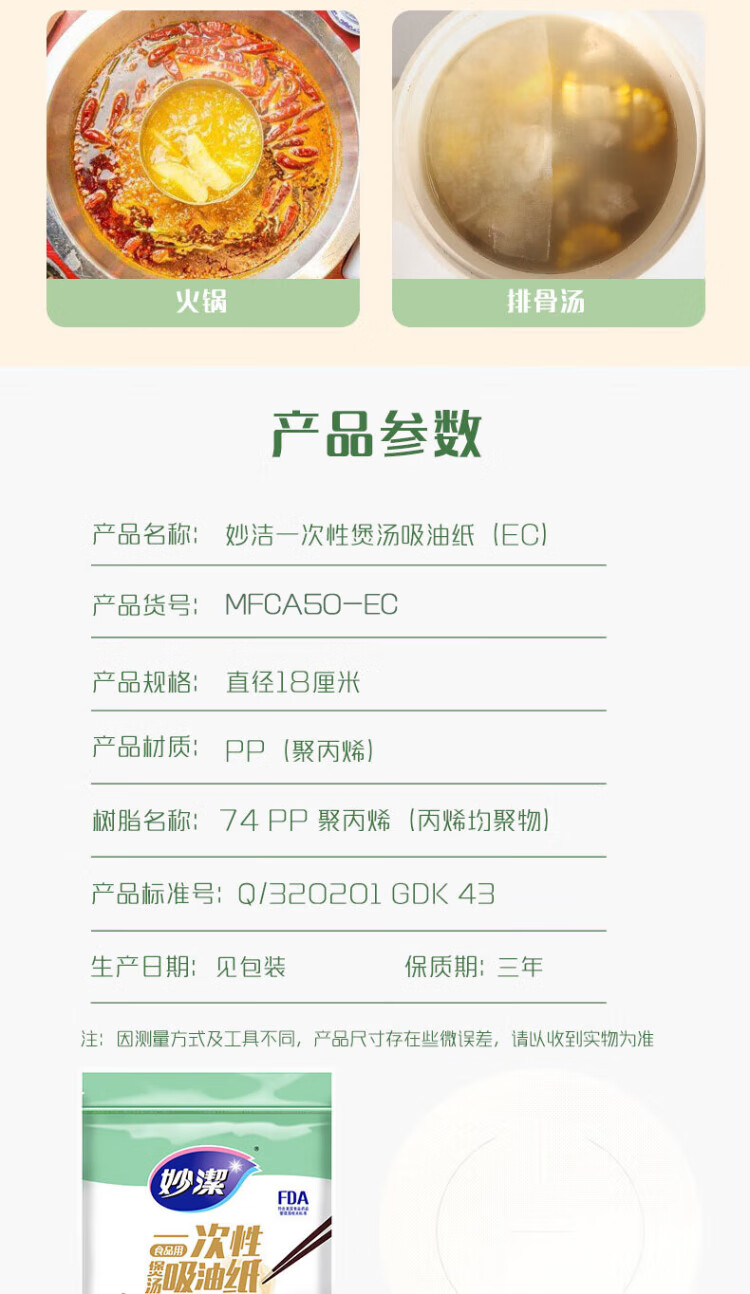 Miaojie disposable soup oil-absorbing paper 50 sheets, food kitchen supplies oil filter paper to remove oil