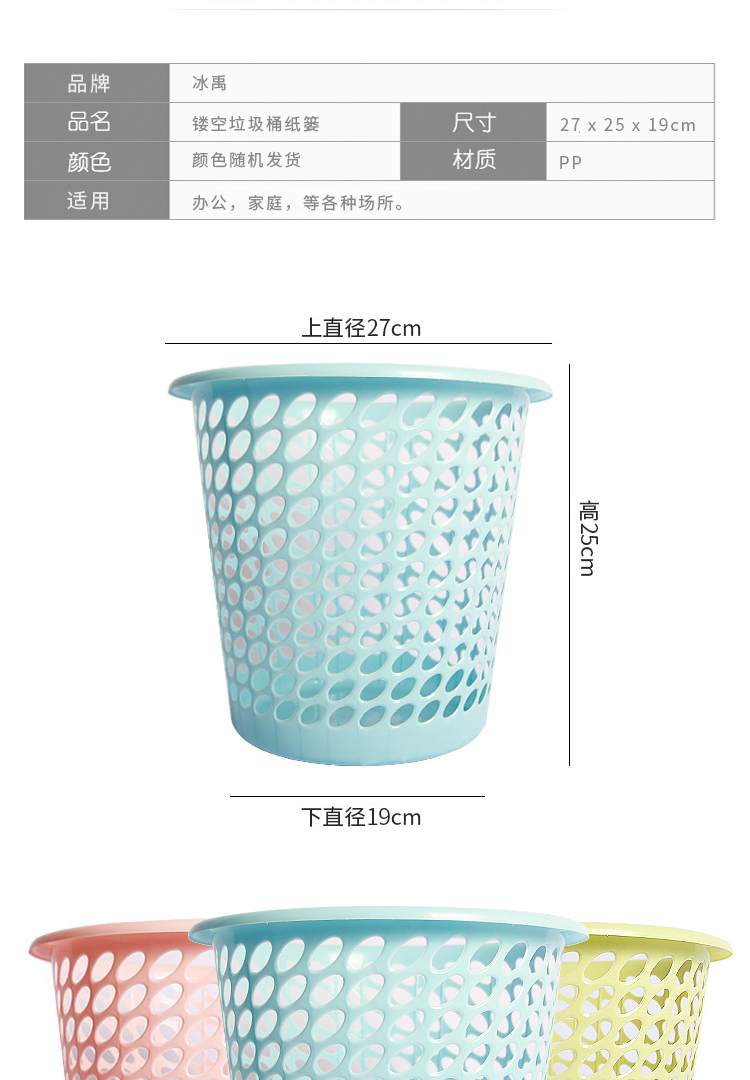Bingyu BYrl-77 multifunctional office bathroom trash can, plastic trash can, hollow trash can paper basket, random color (10 pieces)