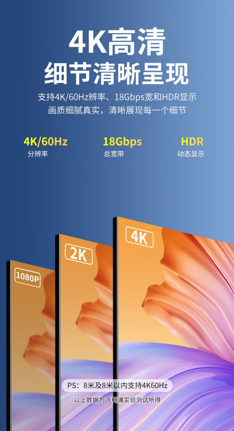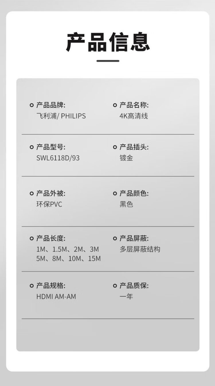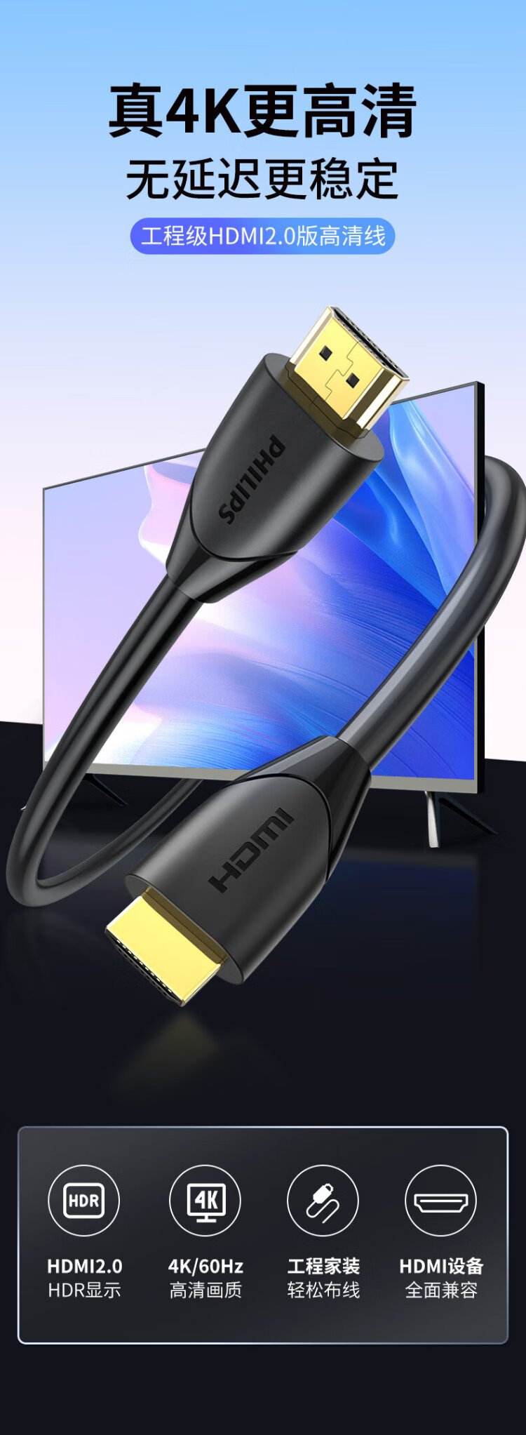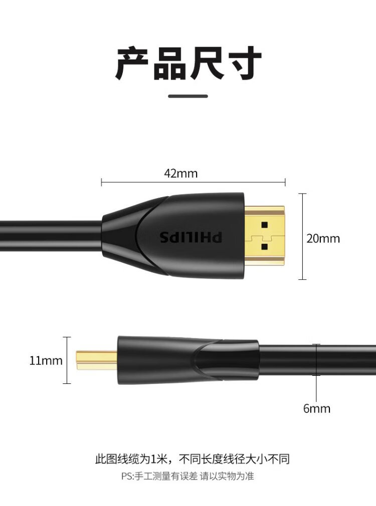 Philips HDMI cable version 2.0 4K60Hz digital high-definition cable 3D video cable laptop set-top box connected to TV projector display data connection cable 1 meter