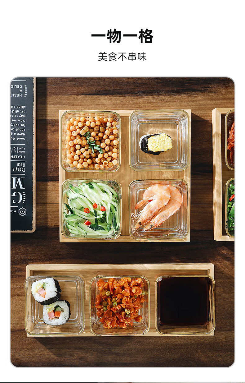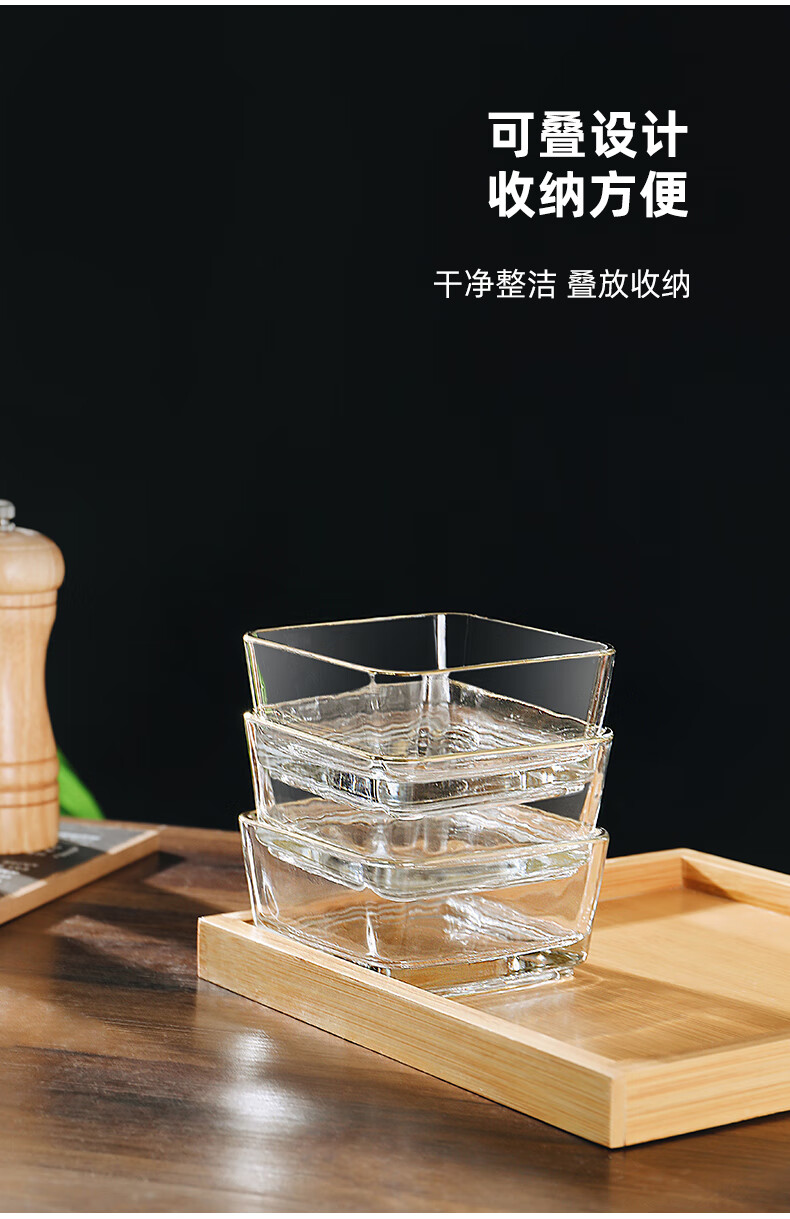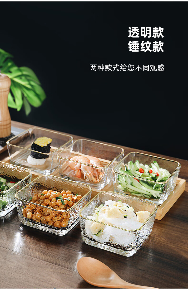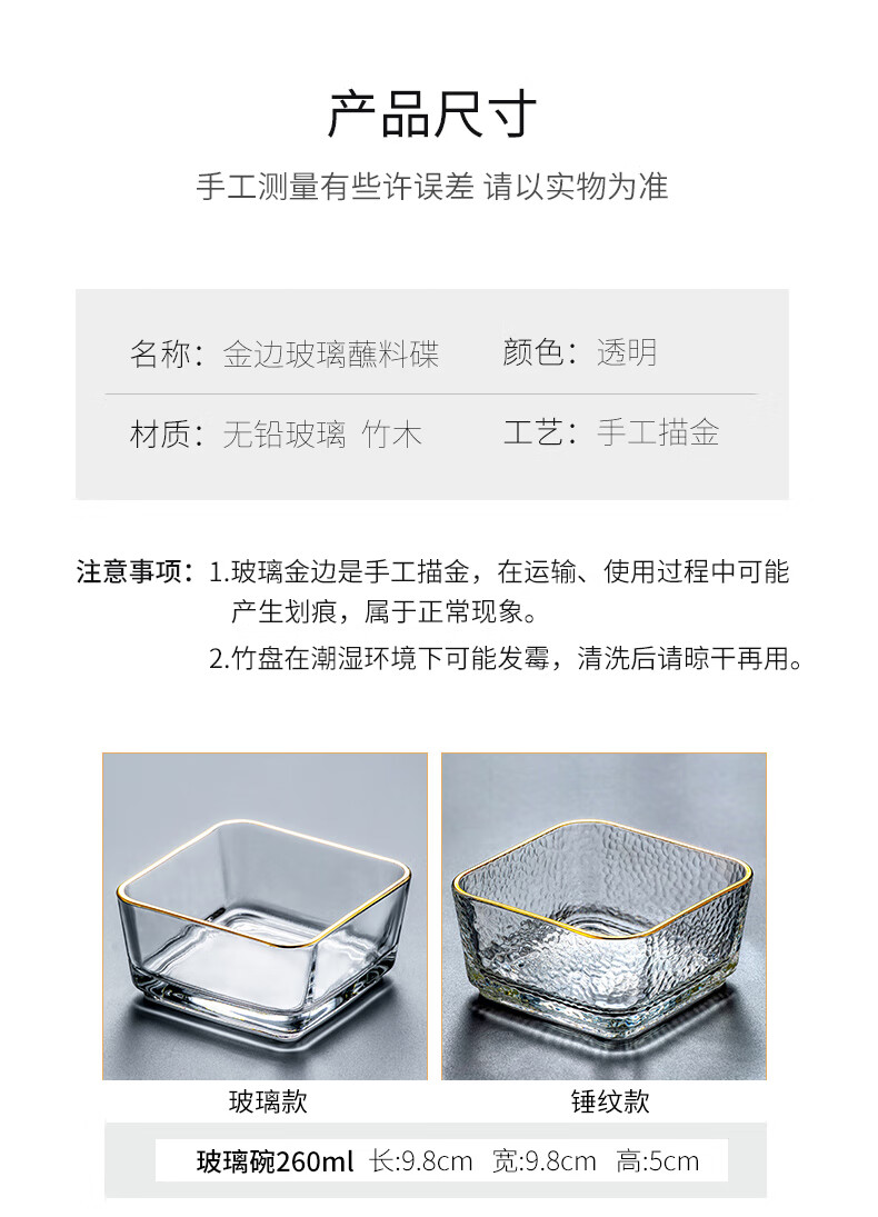 Genasi divided dipping dish, snack platter, household dish, hot pot sauce dish, seasoning dish, oil dish, vinegar dish with tray, 6 gold-rimmed glass bowls + six-grid bamboo plate