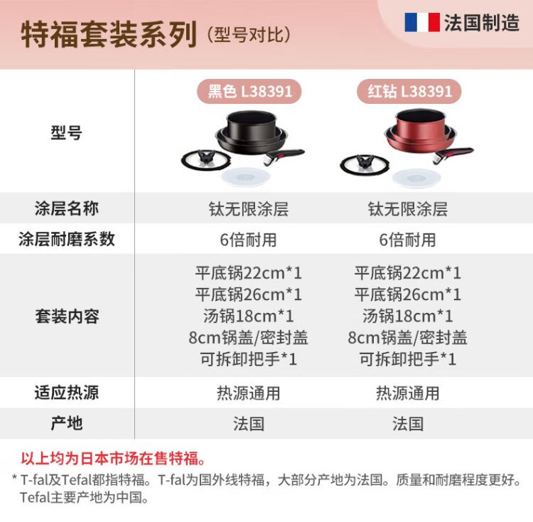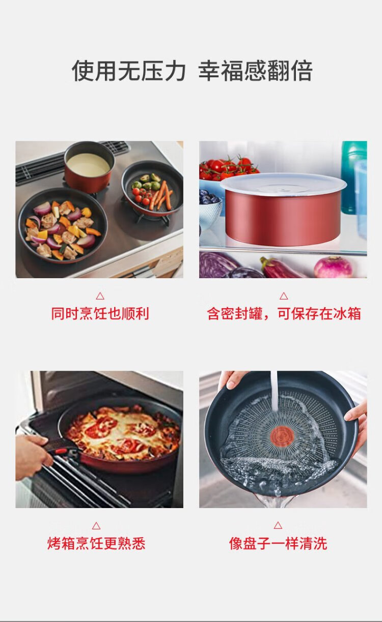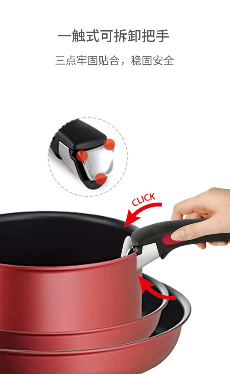 Tefal pot set 6-piece red diamond non-stick pan made in France frying pan soup pot induction cooker universal gift