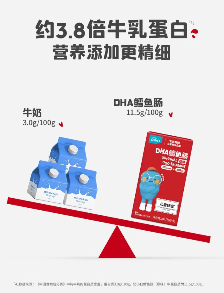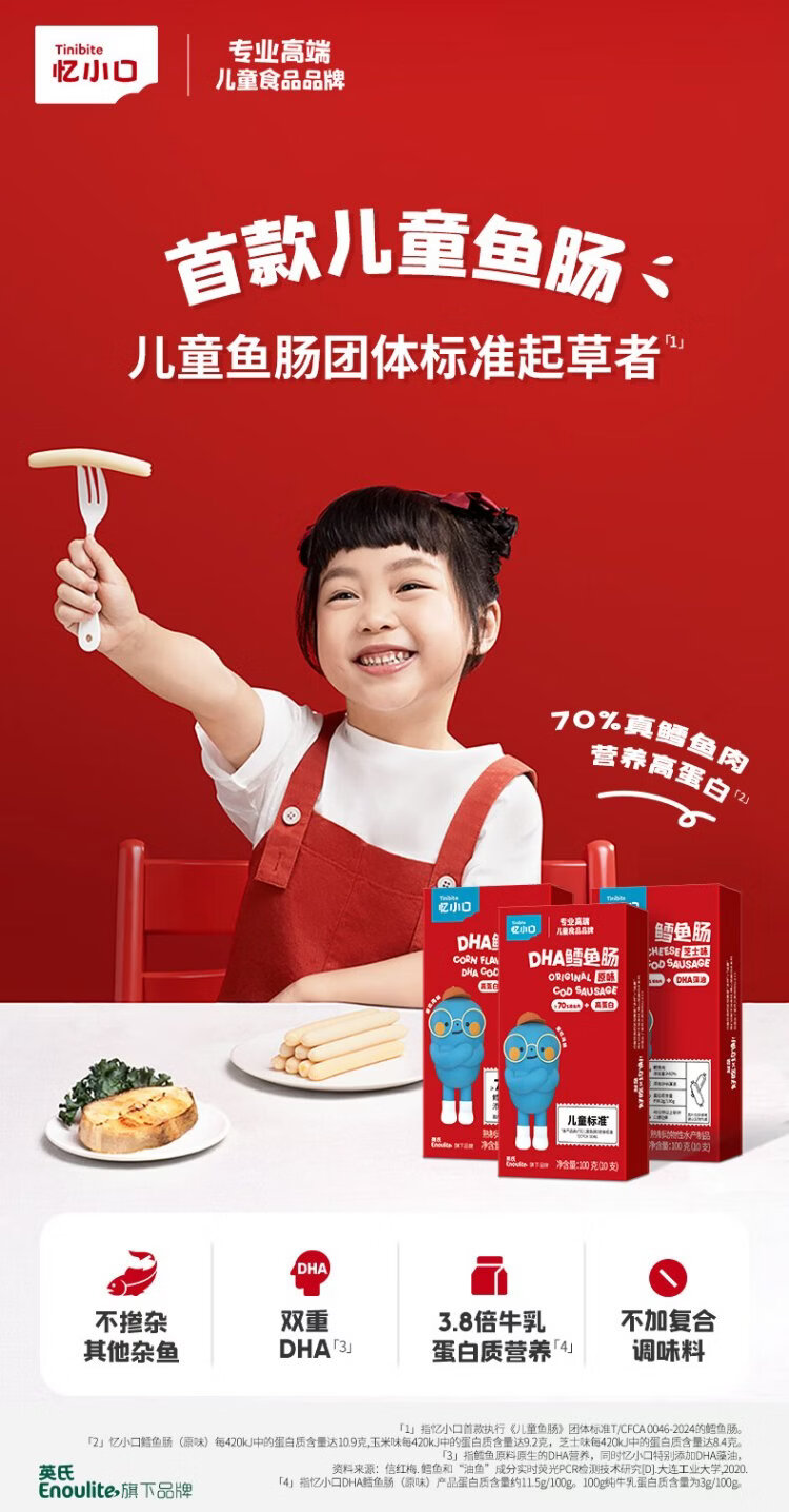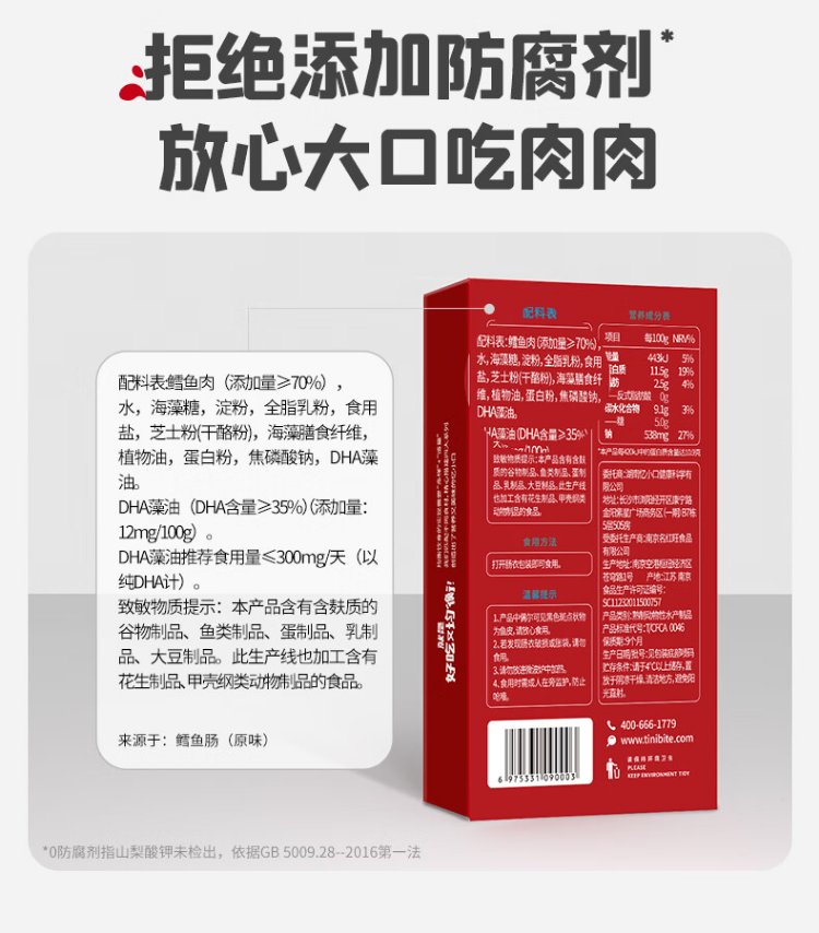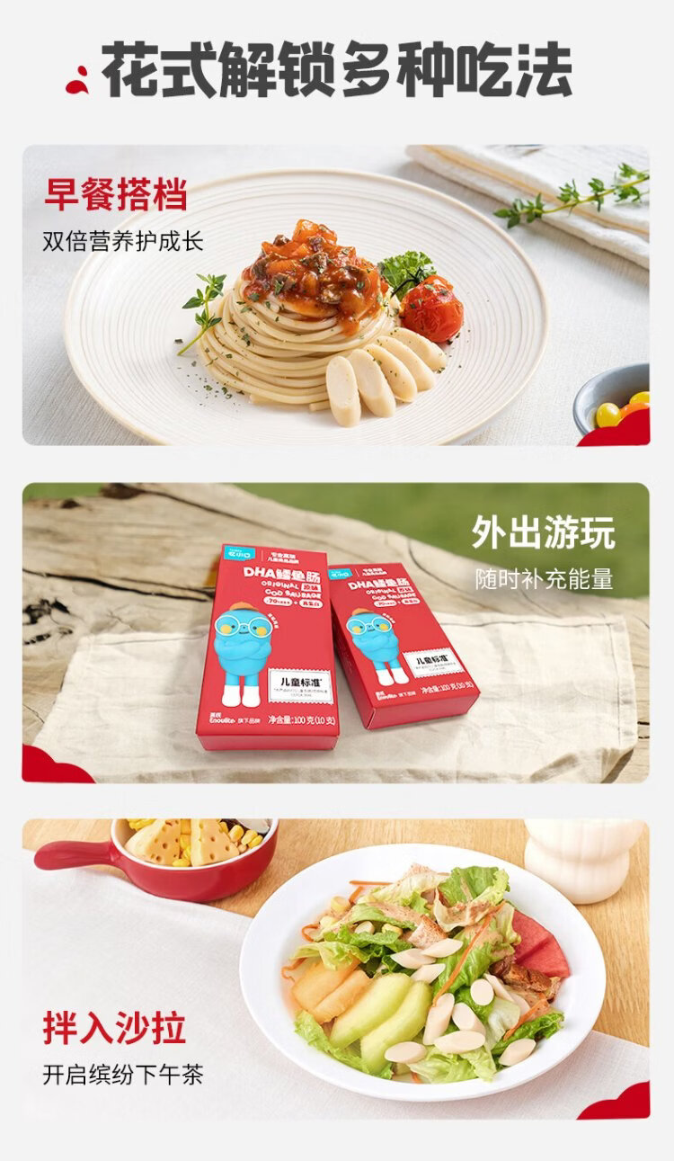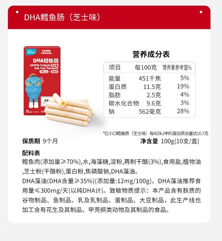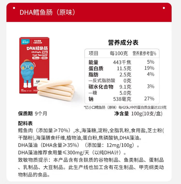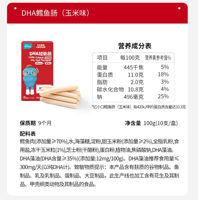 Engnice DHA cod sausage original flavor baby and children snacks nutritious high protein craving-relieving snack ready-to-eat fish sausage 100g/box