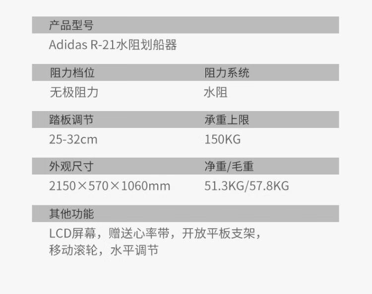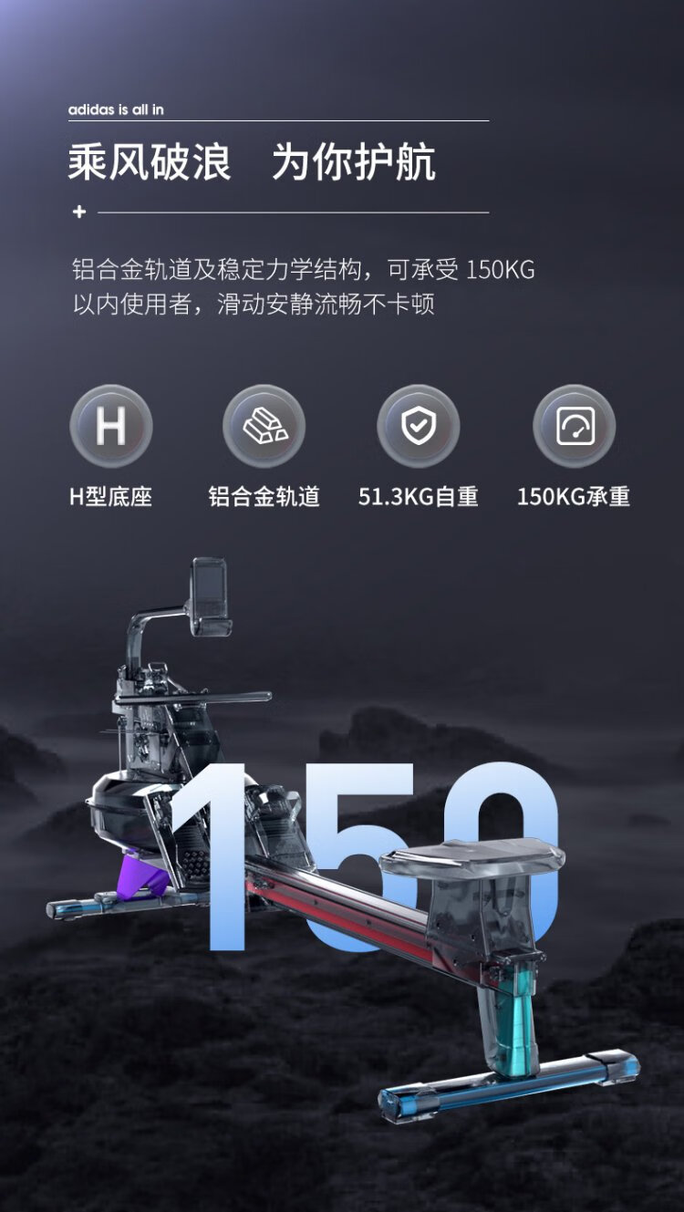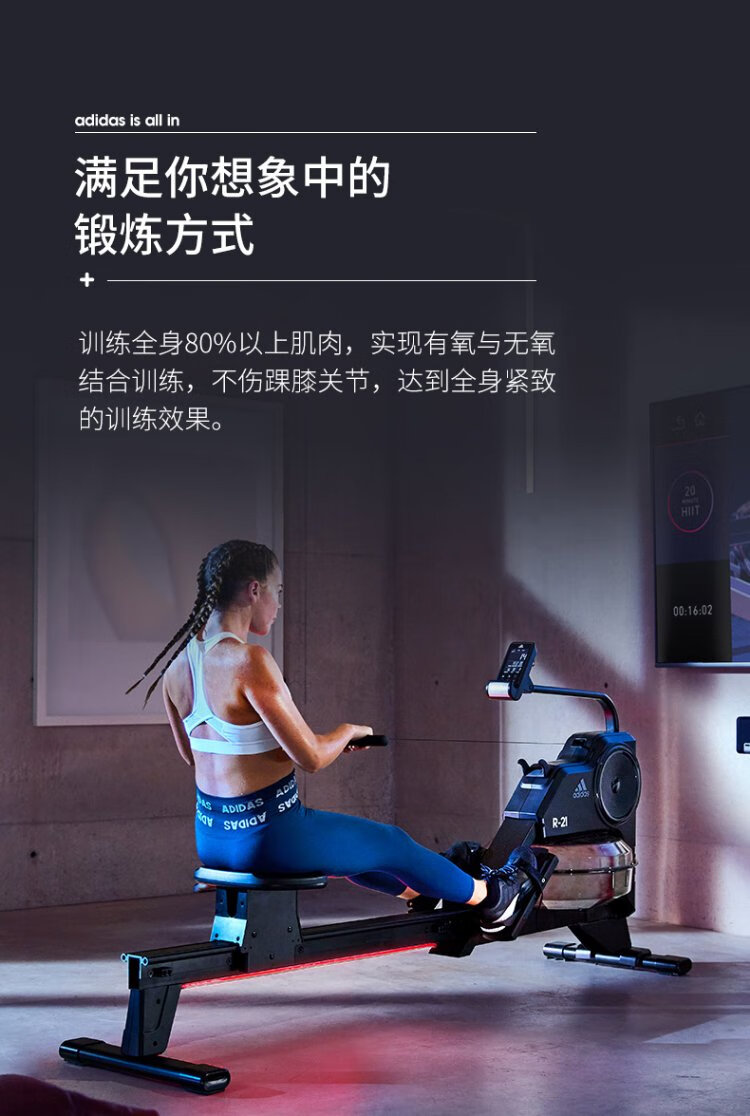 Adidas Adidas R-21 rowing machine home smart self-powered water resistance rowing machine indoor aerobic fitness