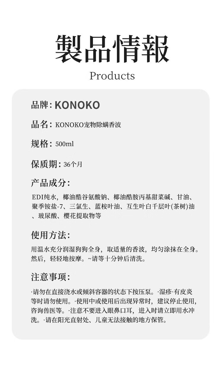 KONOKO pet shower gel for cats and dogs, cleaning, sterilization, mite removal, deodorization and deodorization, Bichon Teddy special bath liquid, bath liquid